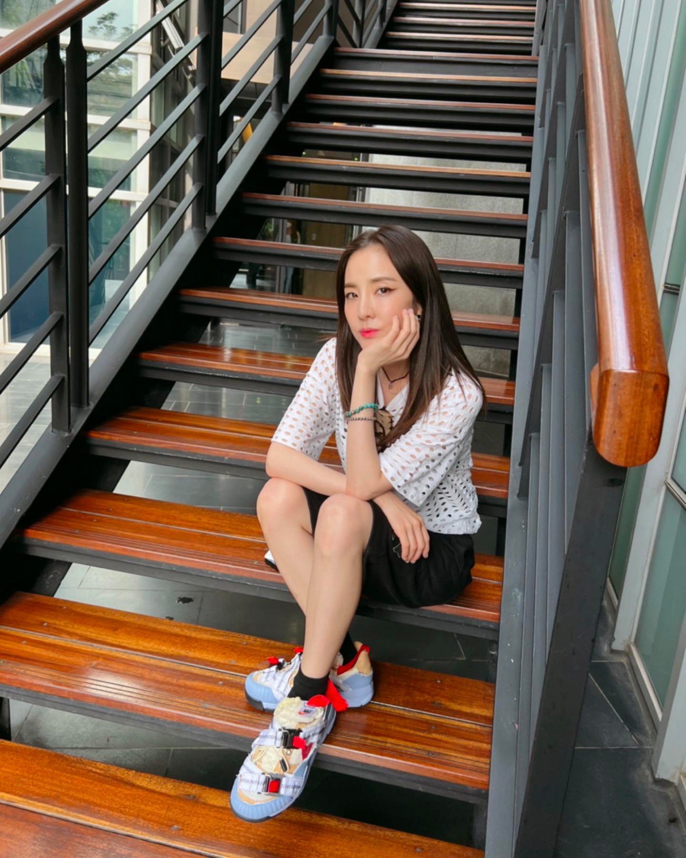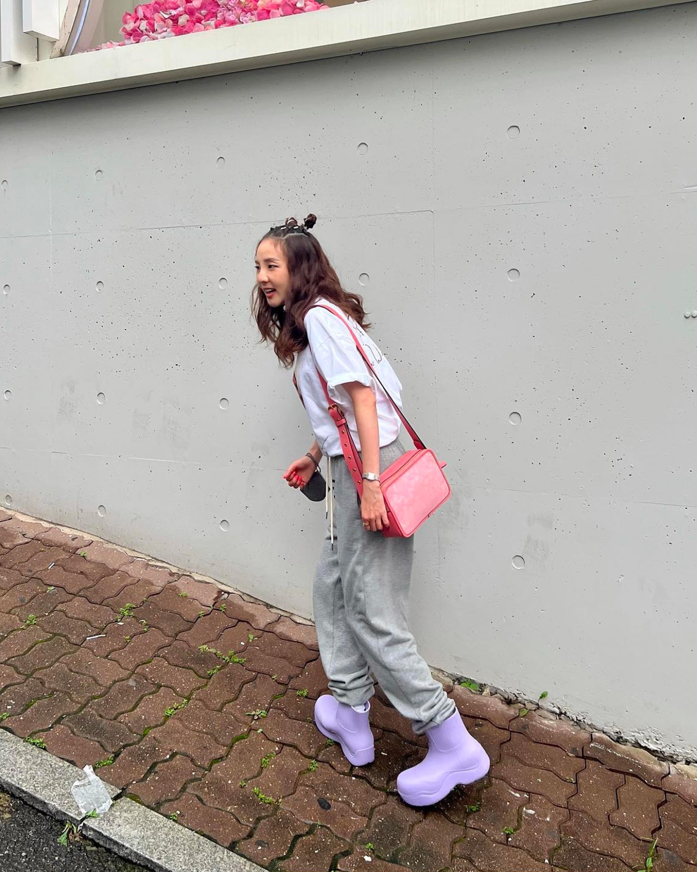 她在近期带来了不少街头感十足的随性穿搭,美津浓 x 空山基联名、火星鞋、YEEZY 洞洞鞋、BAPE STA、BV 雨靴均有出镜。
