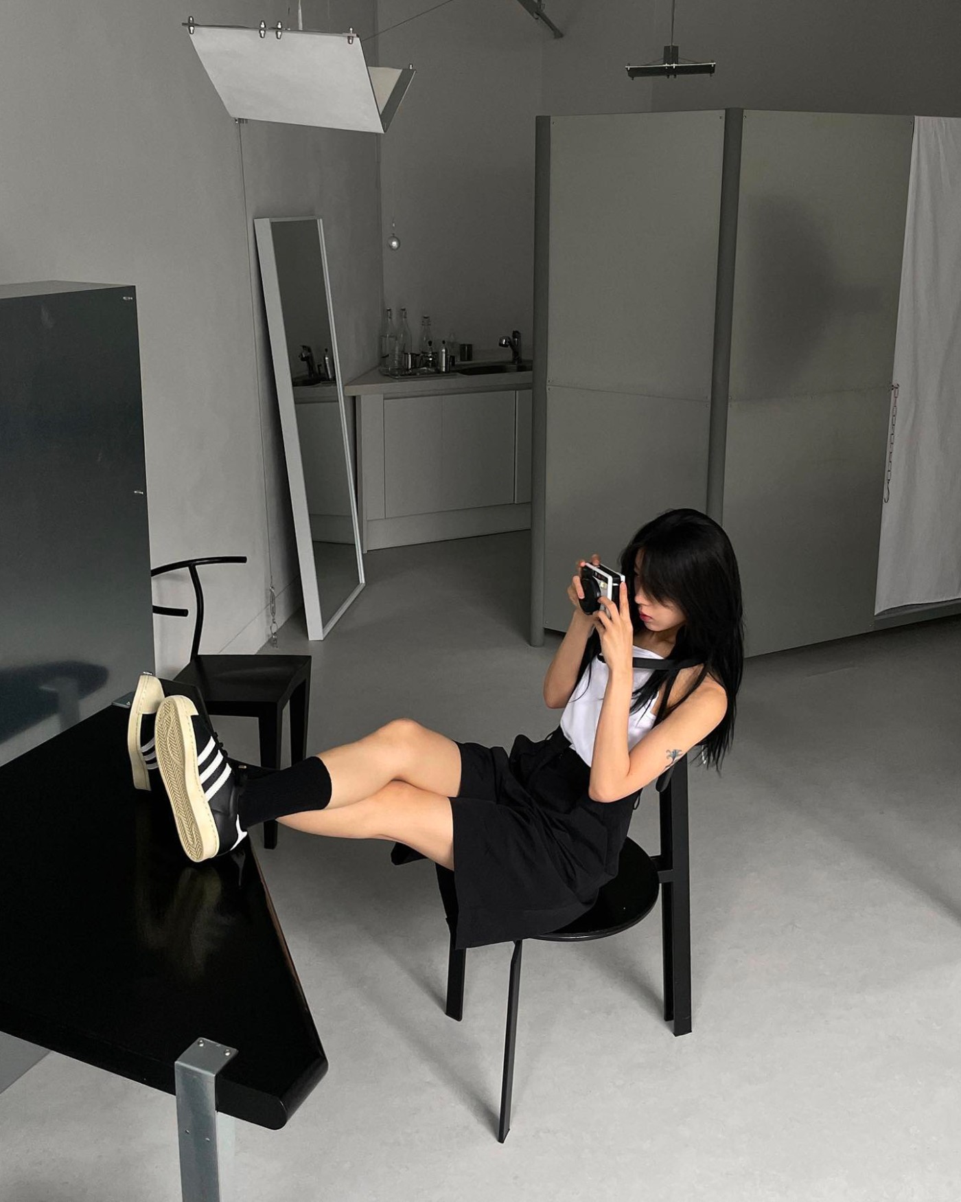 从 Converse 帆布鞋、Superstar 贝壳头等复古鞋型,到 Reebok、Y-3、New Balance 等更为现代化的设计,她都能驾驭得很好。
