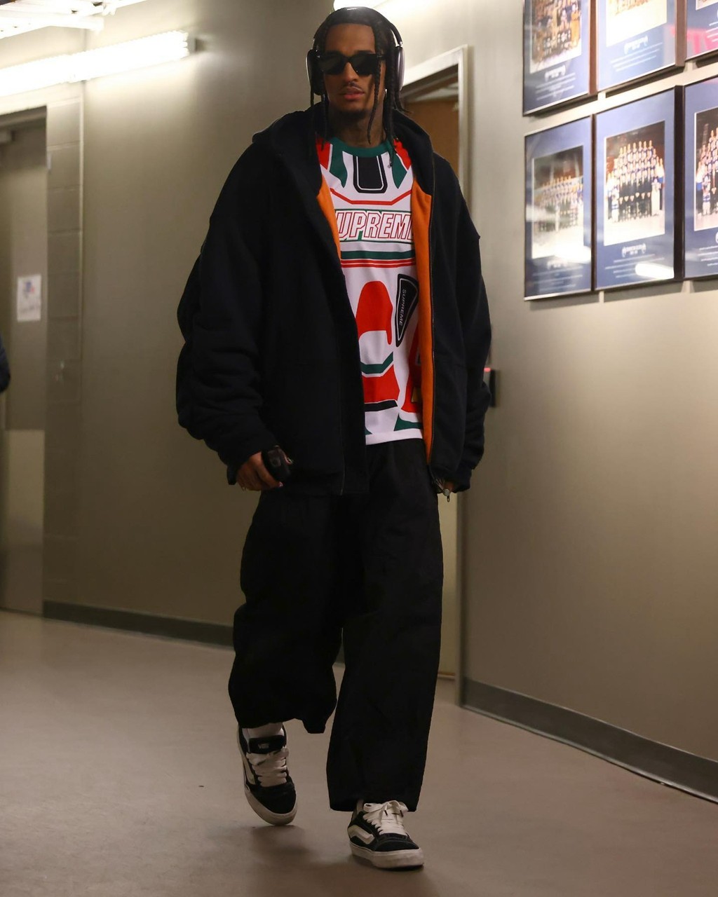 不光「闪电倒钩」,他早前还穿了熊猫配色 Bape STA,但论整体穿搭的完成度,吉迪还得再多跟「雷霆名宿」威少学习学习。