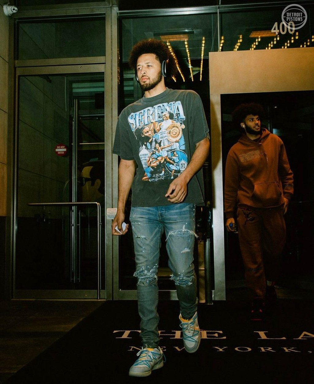 前几天季前赛前,他上脚一双 OFF-WHITE x Nike Dunk Low “THE 50”,作为 Virgil 去世前不久发售的球鞋,可以说是意义非凡。