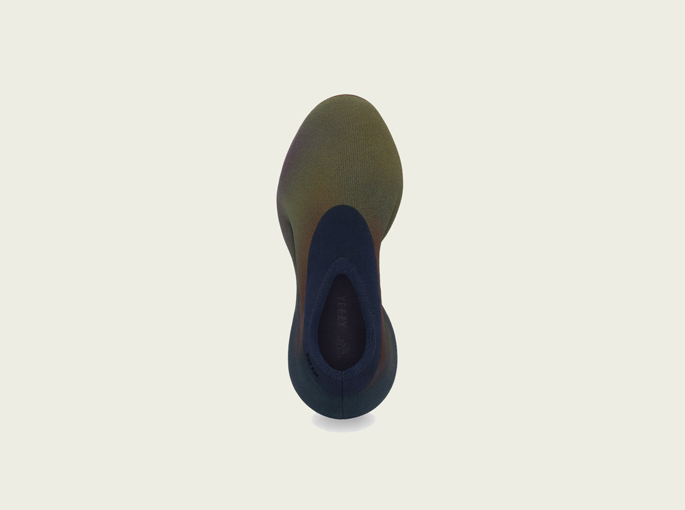 先来看这双 Yeezy Knit RNR,鞋面以无鞋带、无缝线设计的编织材质覆盖,整体线条与 Yeezy 洞洞鞋几乎一样,就像是套了一层袜套。