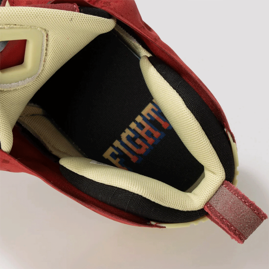 鞋垫上左右脚分别印有「FIGHTER」字样和 Zangief 个人头型,展现出特殊配色身份。
