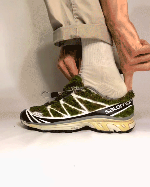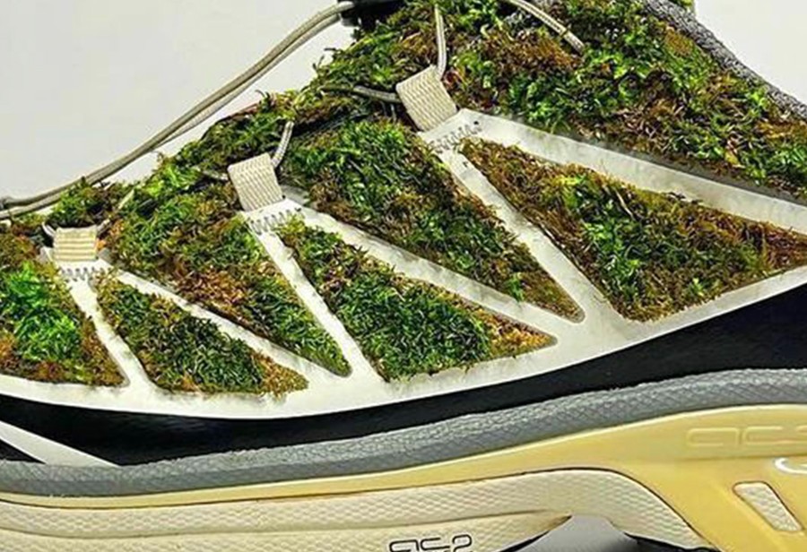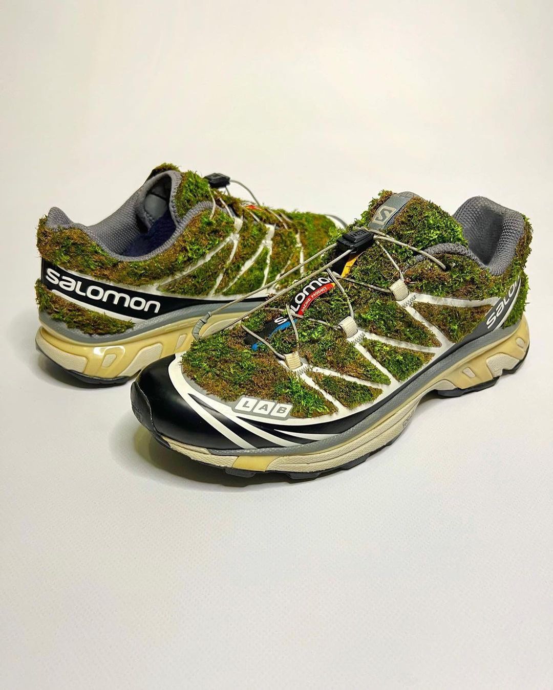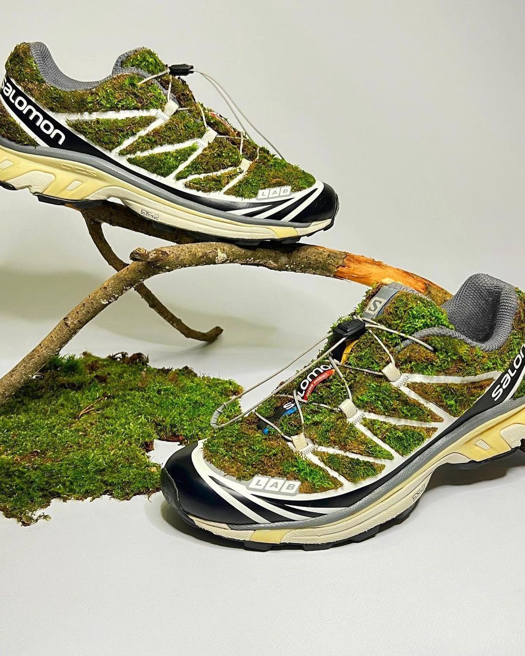 整体造型与之前的 XT-6 别无二致,但在鞋身织物部分植入了苔藓草皮质感的材料,真的非常逼真。