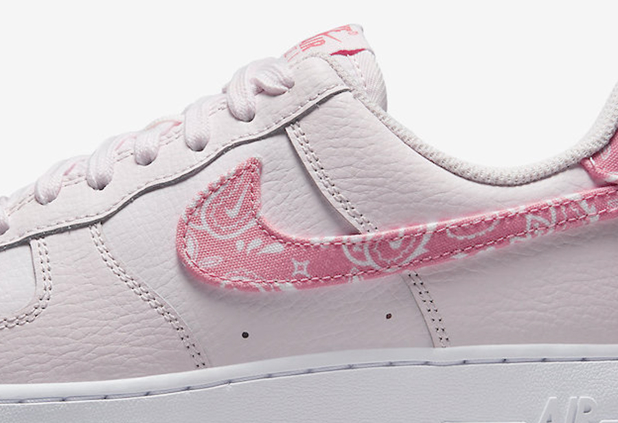 Swoosh 则依然采用腰果花纹路的织物,粉色相比鞋身要更浓艳一些。