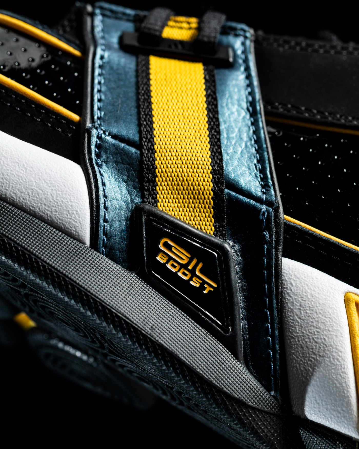 后跟的黑色漆皮上,利用压印工艺印出 adidas Logo,若隐若现。
