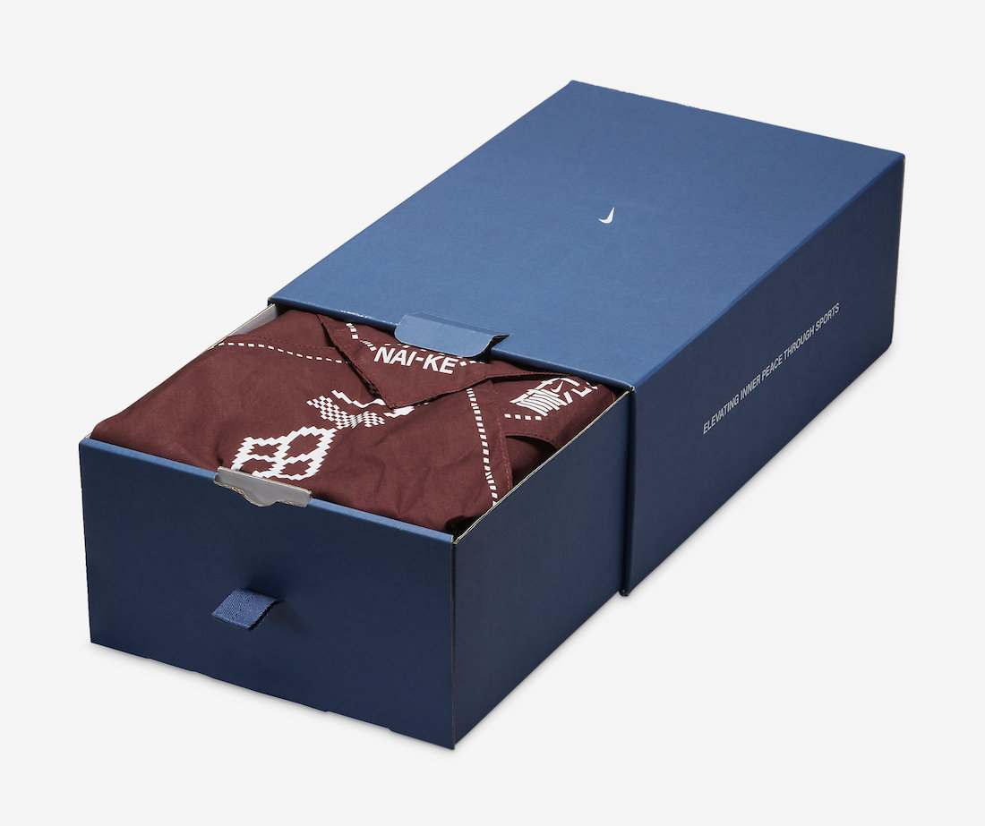 同时鞋盒采用抽屉式设计,防尘布印有 “耐克” 和 “KAI-KE” 字样。