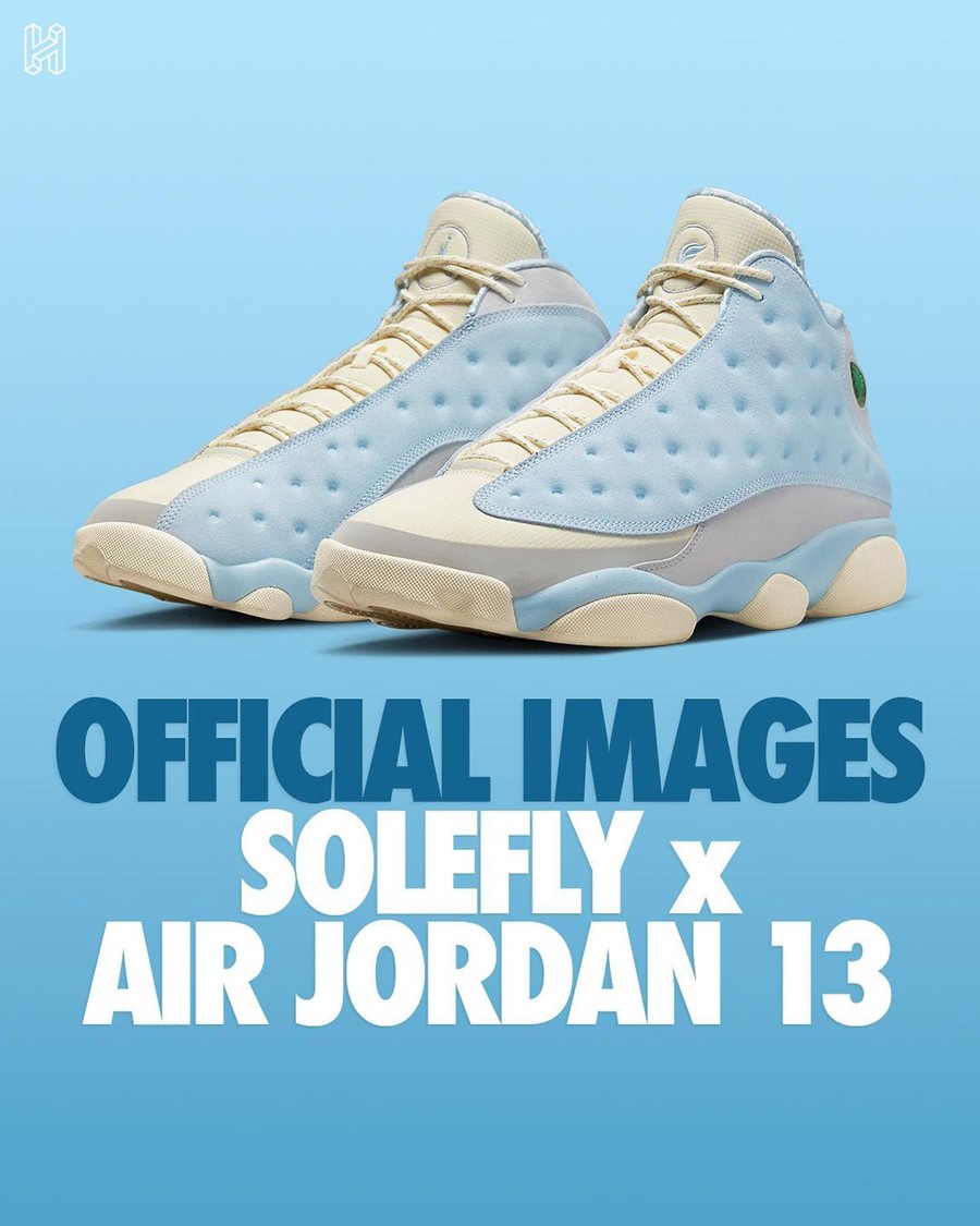 近日,SoleFly 再度携手 Jordan Brand 以 Air Jordan 13 为蓝本设计,整体采用大面积北卡蓝呈现,灰色和米白色点缀,既保证层次感又表达出自身「北卡蓝配色」气质。