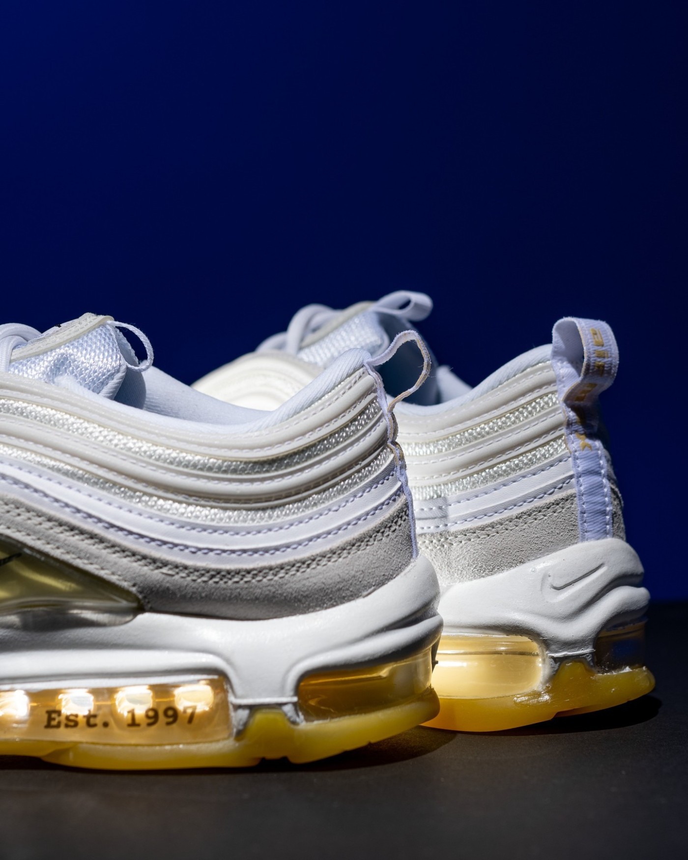 鞋中底开放式气垫上印有 “1997” 字样,代表着 Air Max 97 的诞生年份。