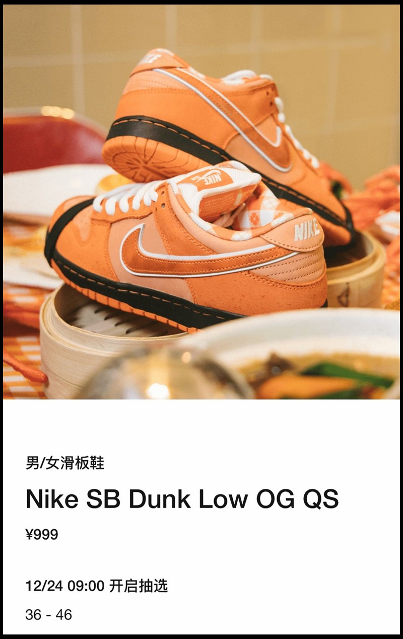 今早 9 点,国区 SNKRS 终于迎来「橙龙虾」Concepts x Nike SB Dunk Low 的抽签发售,不知你是否顺利中签?