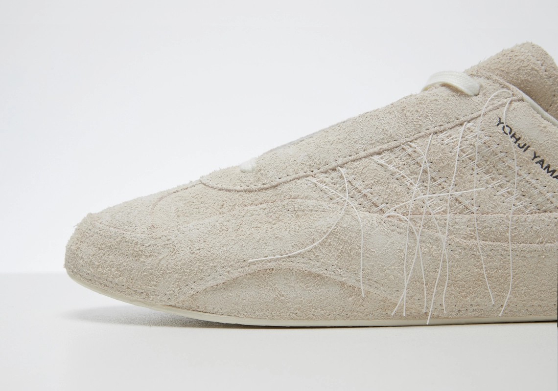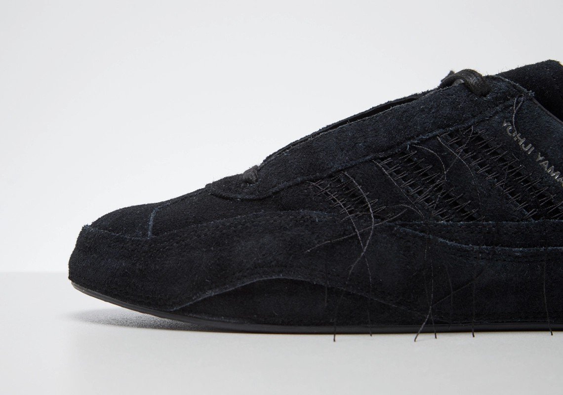 三道杠 logo 与鞋身保持同色调设计,鞋侧压印有「Yohji Yamamoto」字样,低调彰显鞋款身份。