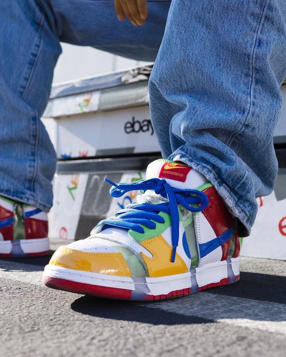 eBay x Nike SB Dunk Low 2003 年时首次亮相,并在当年拍出了 $30000 美元左右的天价,并且仅为拍下它的人打造了一双本人尺码。