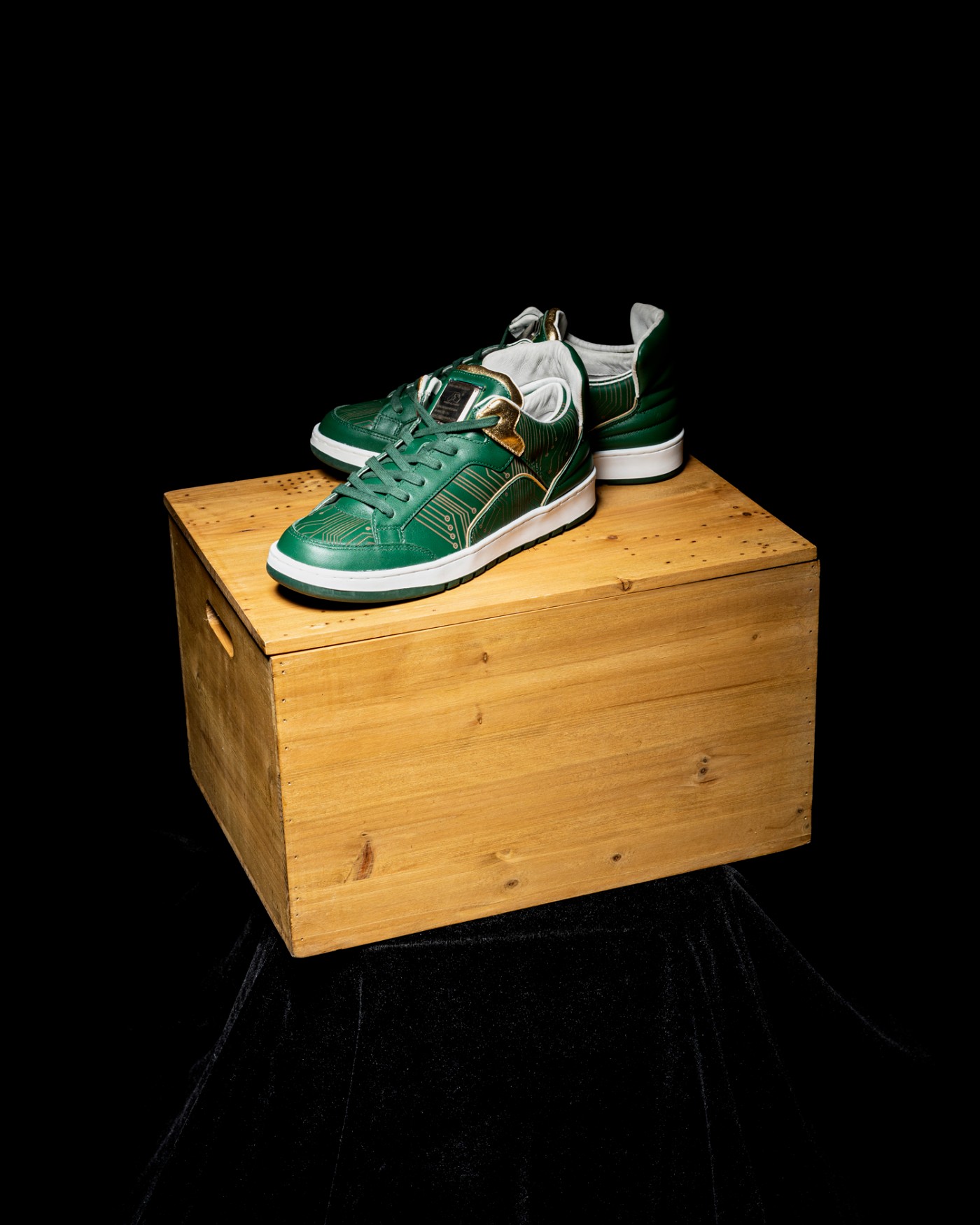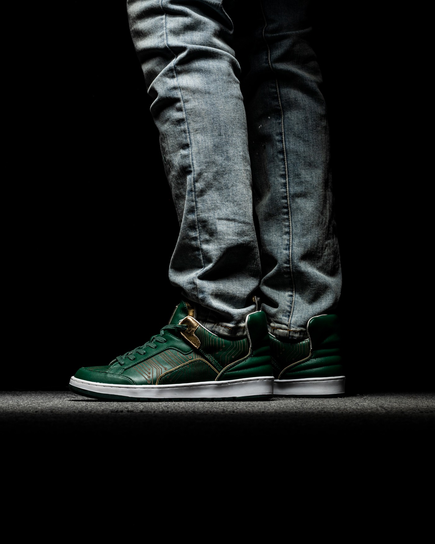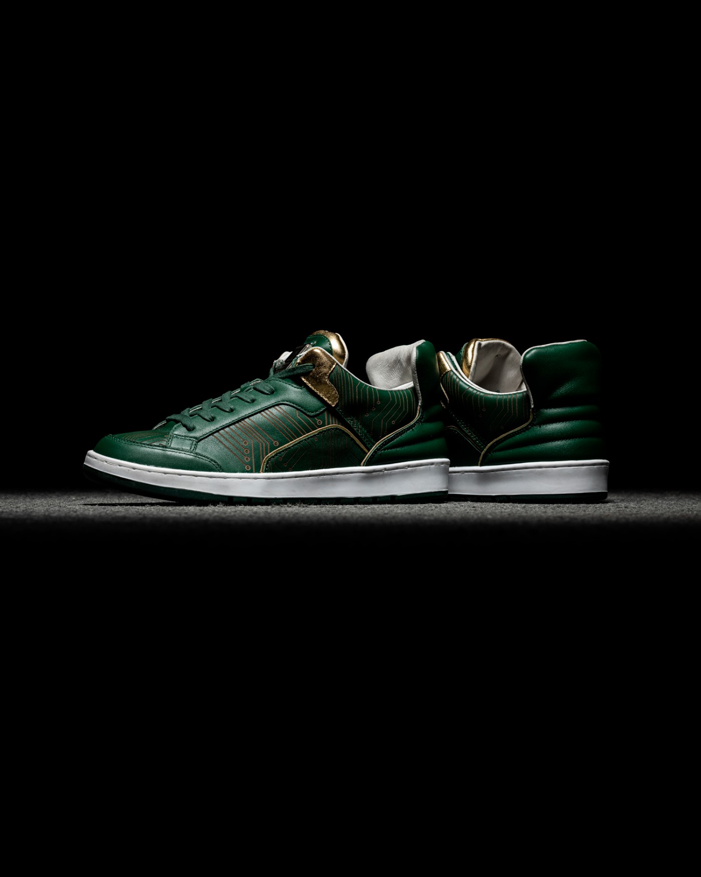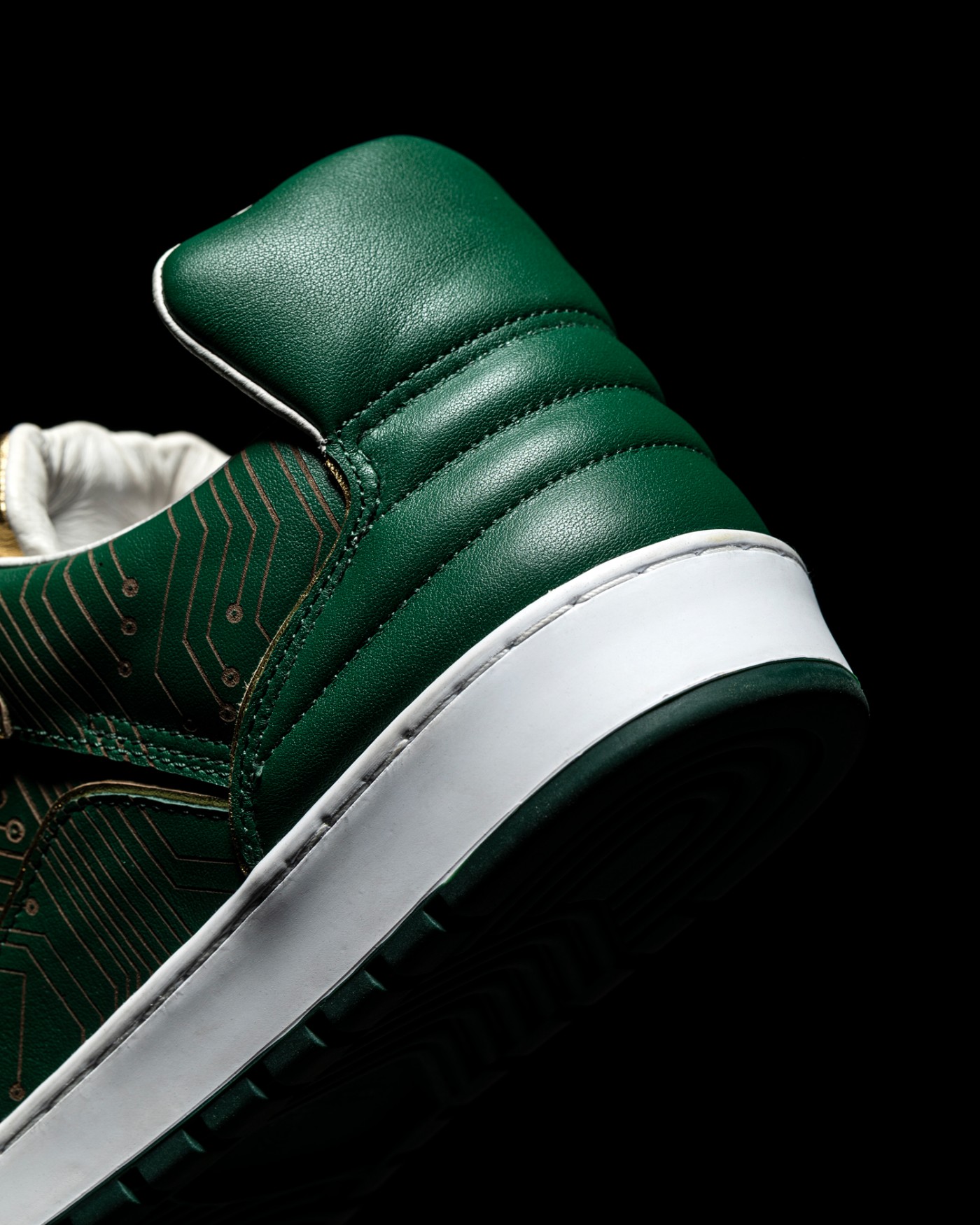 而是由 Inner Alchemy 团队自行打造的全新鞋型为基础,通体采用绿色呈现,辅以金色、白色点缀细节,营造出的视觉效果十分高级。