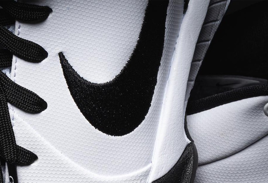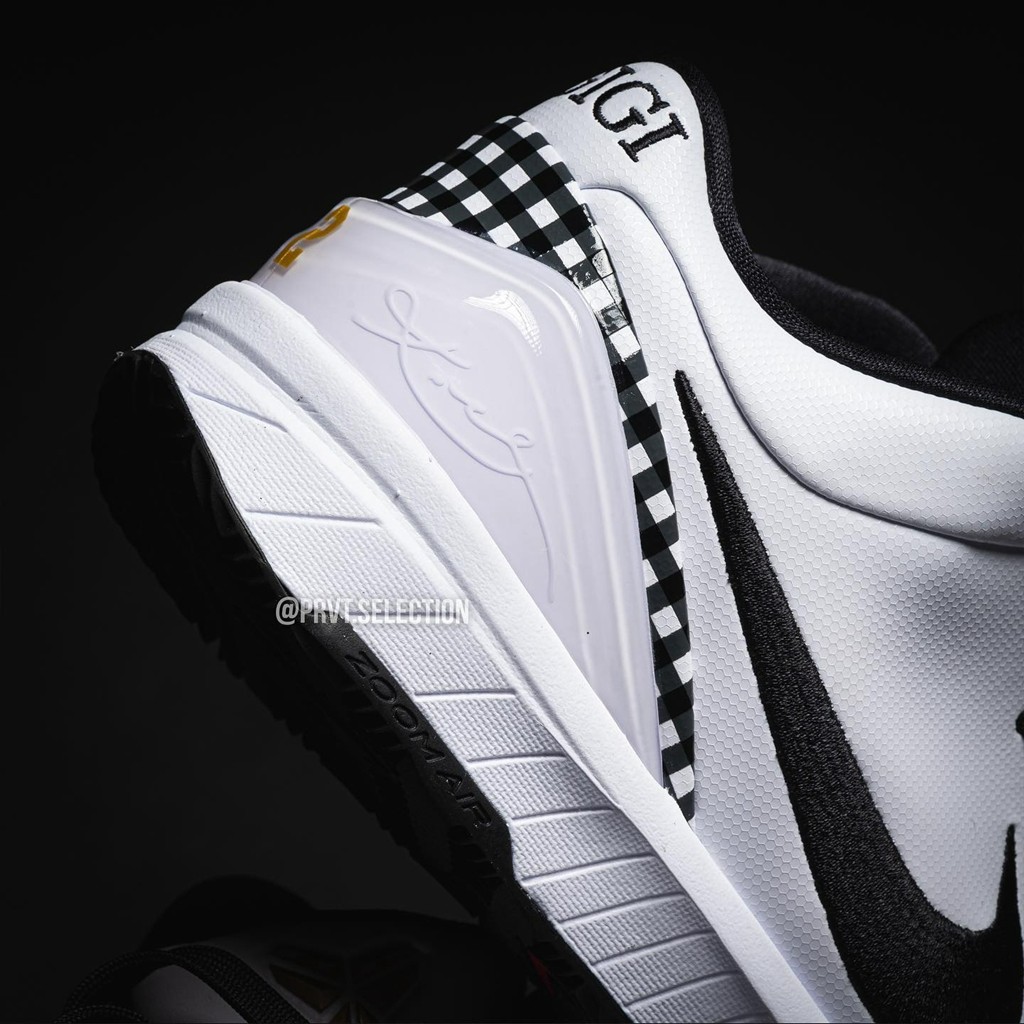 整双鞋以大面积白色为主调,辅以黑色妆点,致敬科比曼巴篮球学院的球衣配色。