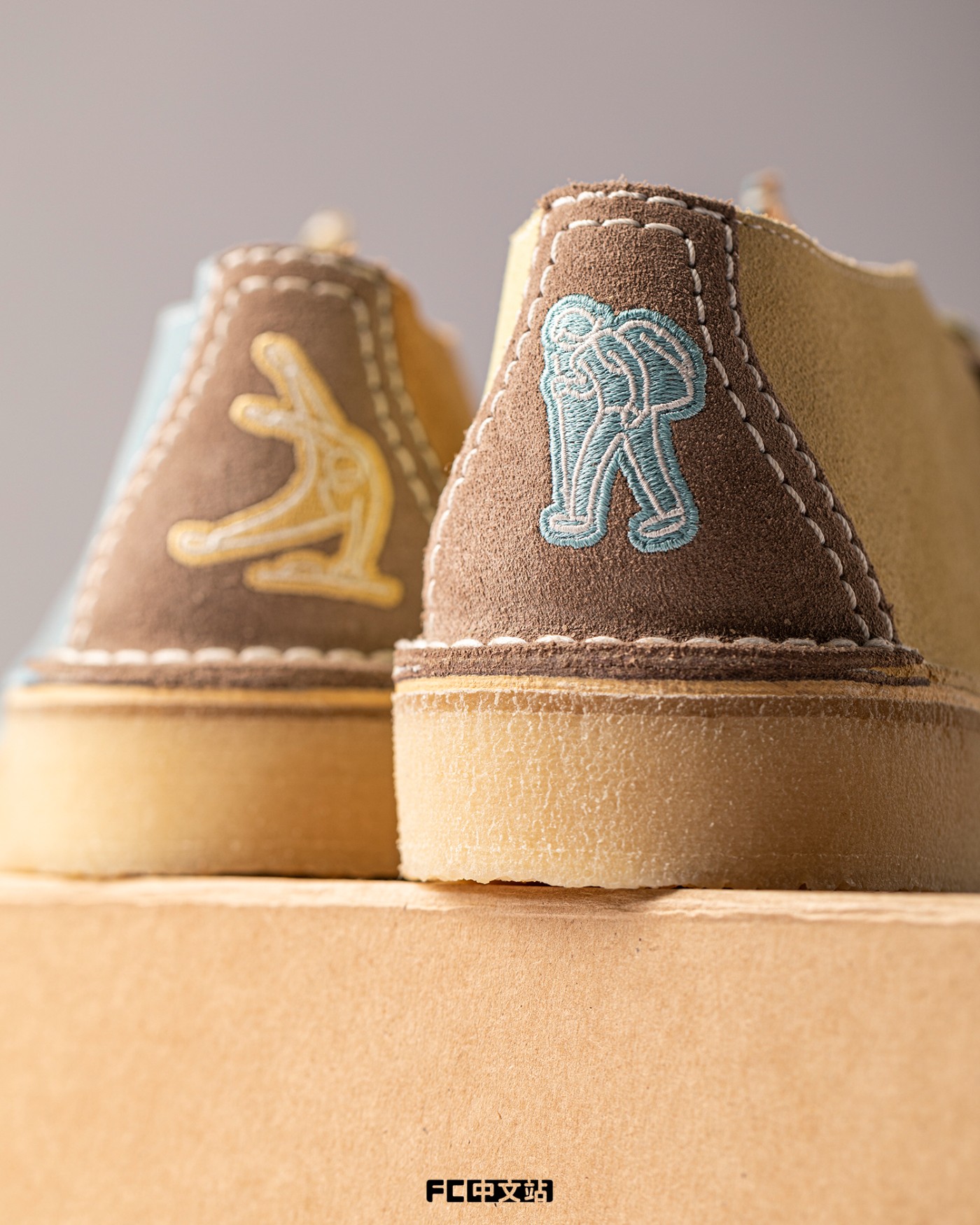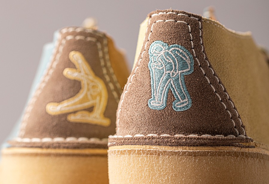 细节方面,除了内侧「CLARKS ORIGINALS」和「LI-NING1990」Logo 外,还在后跟加入了此次联名的专属刺绣细节。