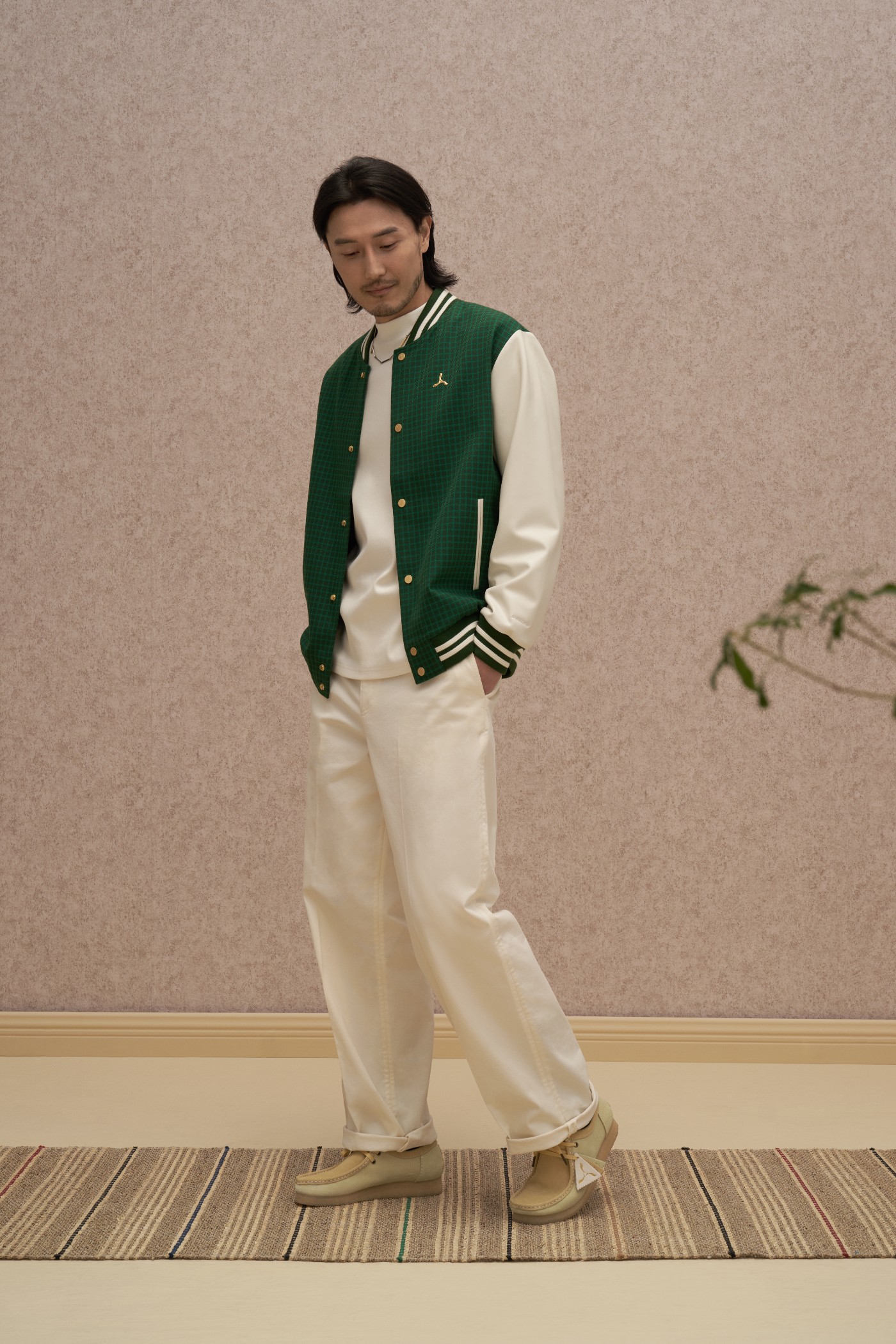 另一双袋鼠䨻(WALLABEE bèng)上脚后也有着不俗颜值,简约造型搭配白色直筒长裤,呈现出古典高级感。