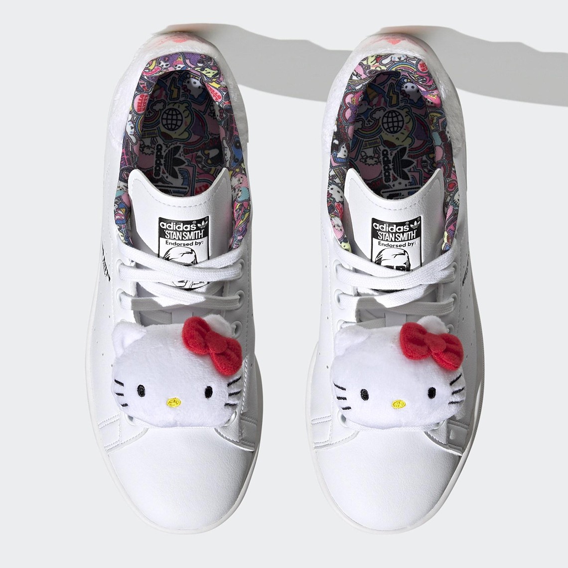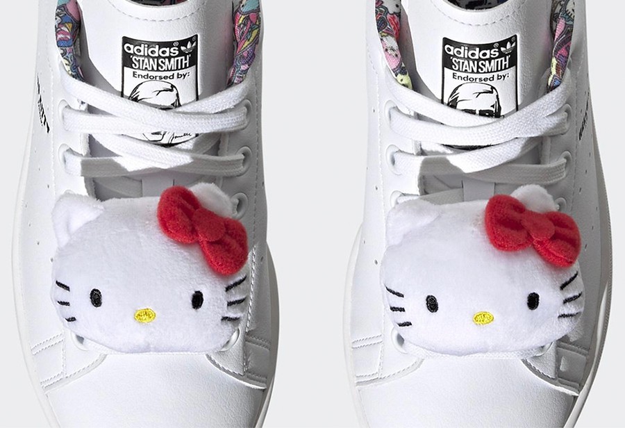 鞋侧原有 Stan Smith 字样,本次伴随主题改为「Hello Kitty And Friends」。