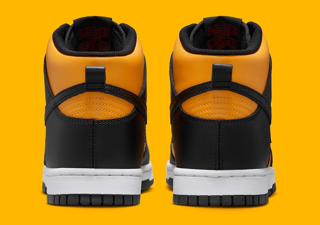 凭借着李小龙的《死亡游戏》,黄黑配色已经逐渐成了一个标志性配色,这双 Dunk Hi 也不例外。