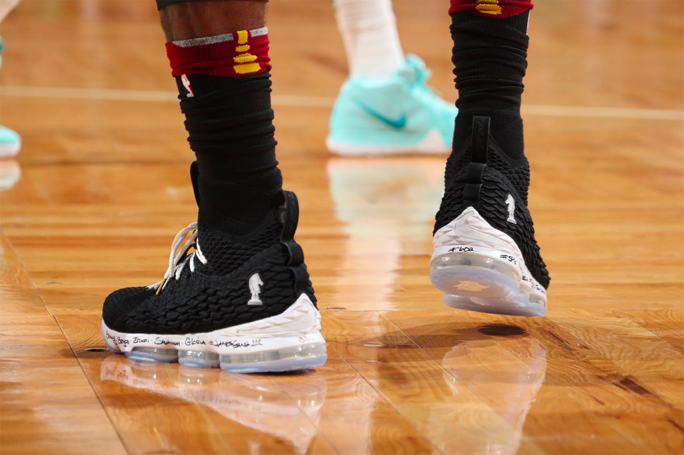 最特别的是,鞋侧不仅有代表「四骑士」的国际象棋棋子加持,后跟还刺绣有「LRMR」,代表 LeBron James、Rich Paul、Maverick Carter 和 Randy Mims 四人的名字首字母。