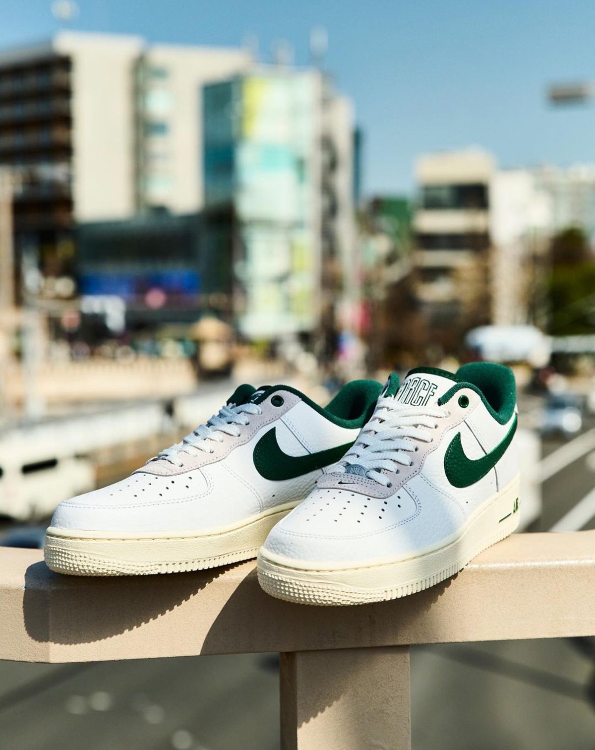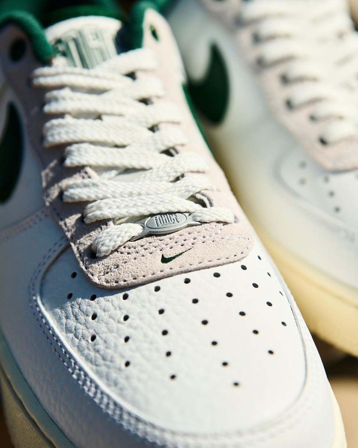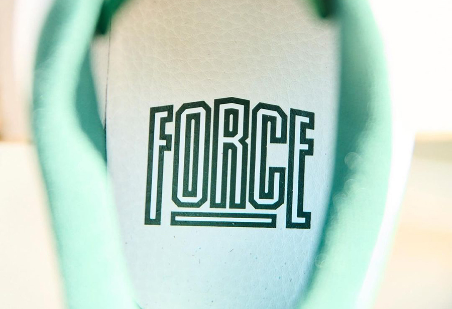 细节方面,鞋舌区别于以往的标签设计,改为了花体的 Nike Force 1 字样,彰显出了配色特殊性。