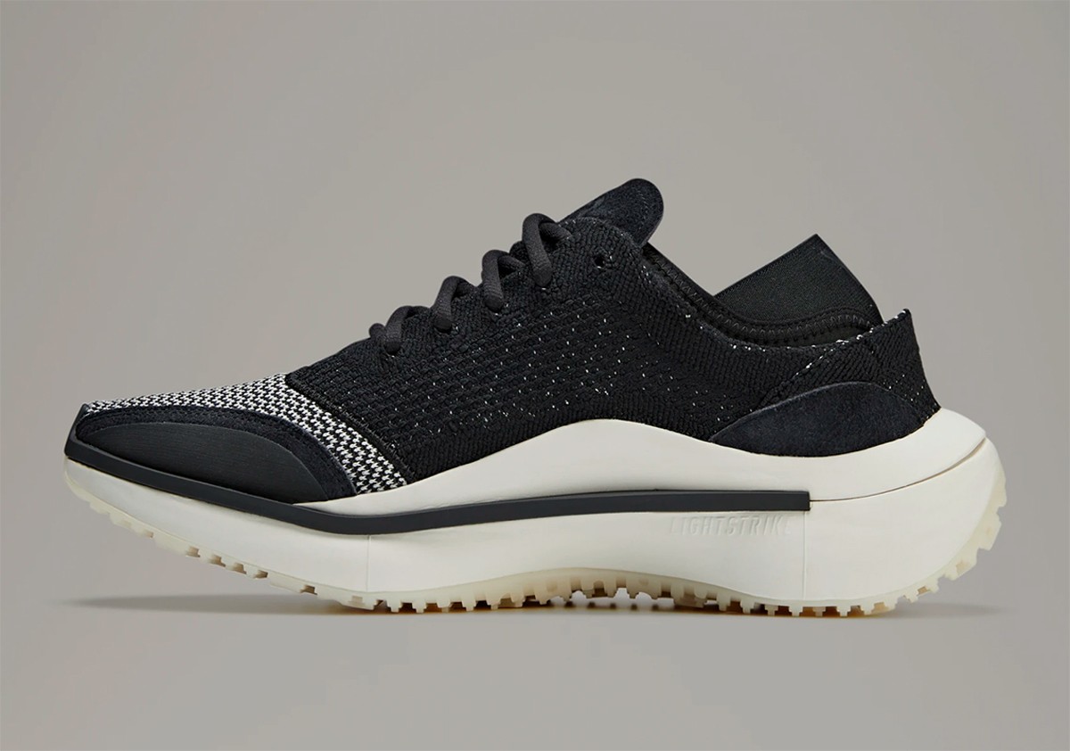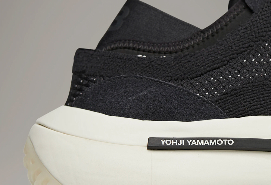 鞋身没有出现任何形式的三道杠 Logo,仅仅是在鞋舌和中底部分写有「Y-3」字样和「Yohji Yamamoto」字样,彰显自身独特性。