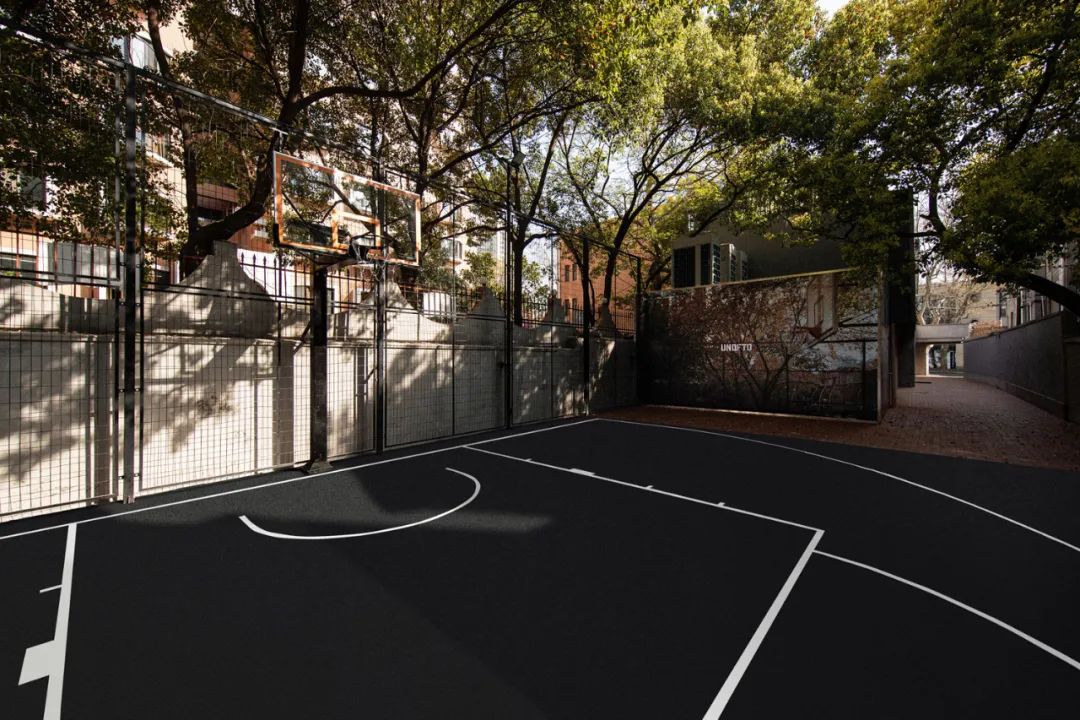 通过长廊向内而行,绿树环绕下的后院篮球场绝对是热爱拍照、打卡的小伙伴们期望的样子!