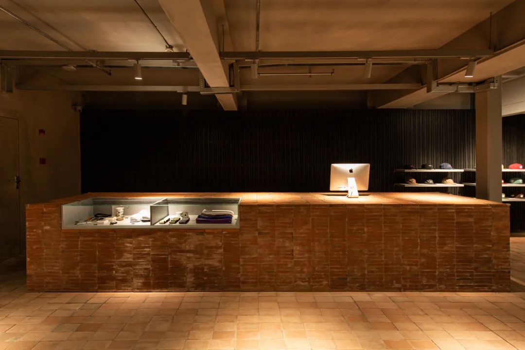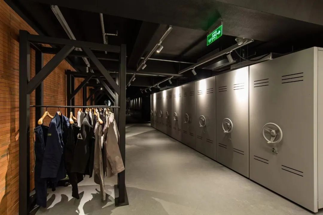 红色砖块元素贯穿了整个室内外,走进店内二楼可以看到以洛杉矶 UACTP 训练馆为灵感而打造的黑色金属铁架。