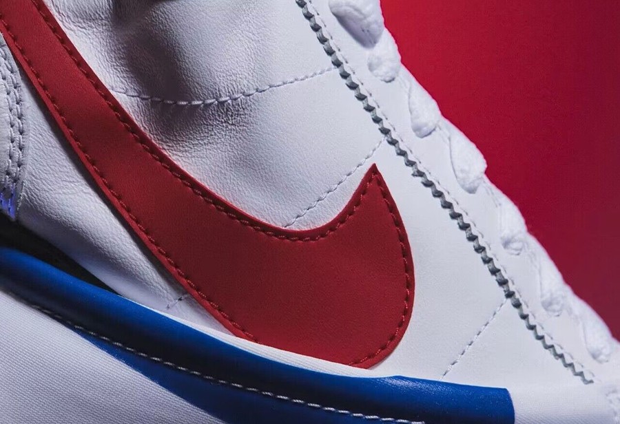 作为冠希哥口中最后一双「功夫鞋」,整体致敬电影《某甘正传》中的 Cortez OG 配色,延续经典某甘鞋的白、红、蓝构色方案,相较于前两款更具 OG 气质。