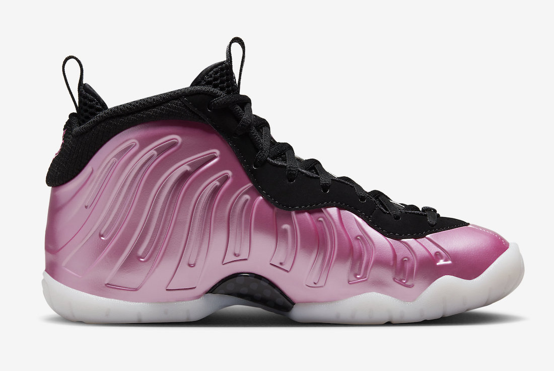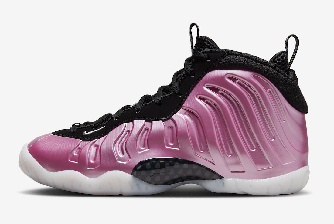 从目前释出的官图来看,鞋身配色完美继承了 Polarized Pink 粉喷的经典色调和光泽质感,但由于是童鞋 Little Posite One 规格,所以鞋面的发泡材质明显不如成人款 Air Foamposite One 饱满,原有碳板也改为玻璃纤维呈现。