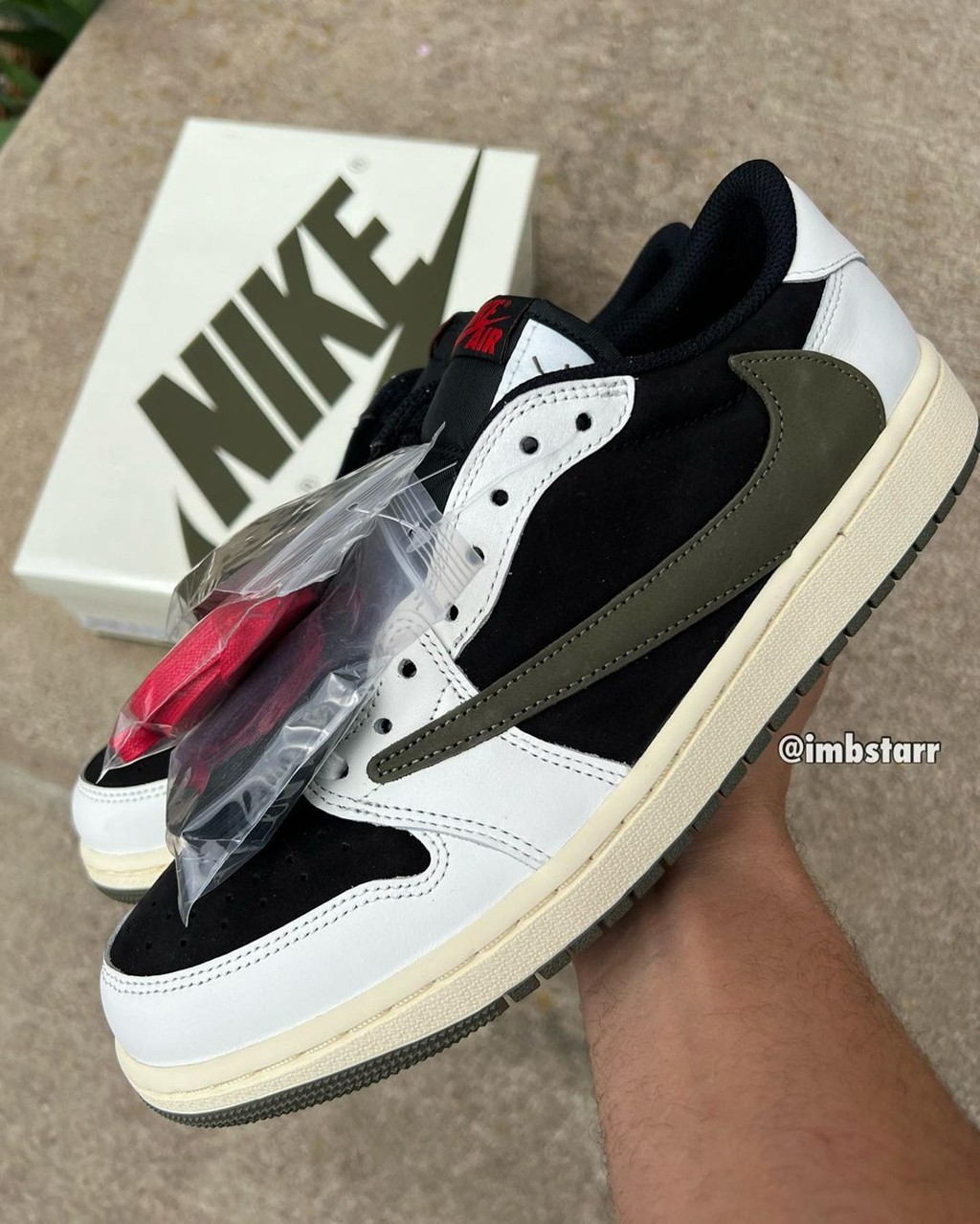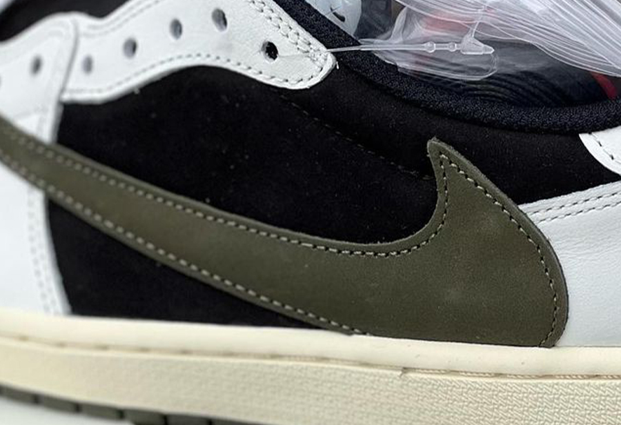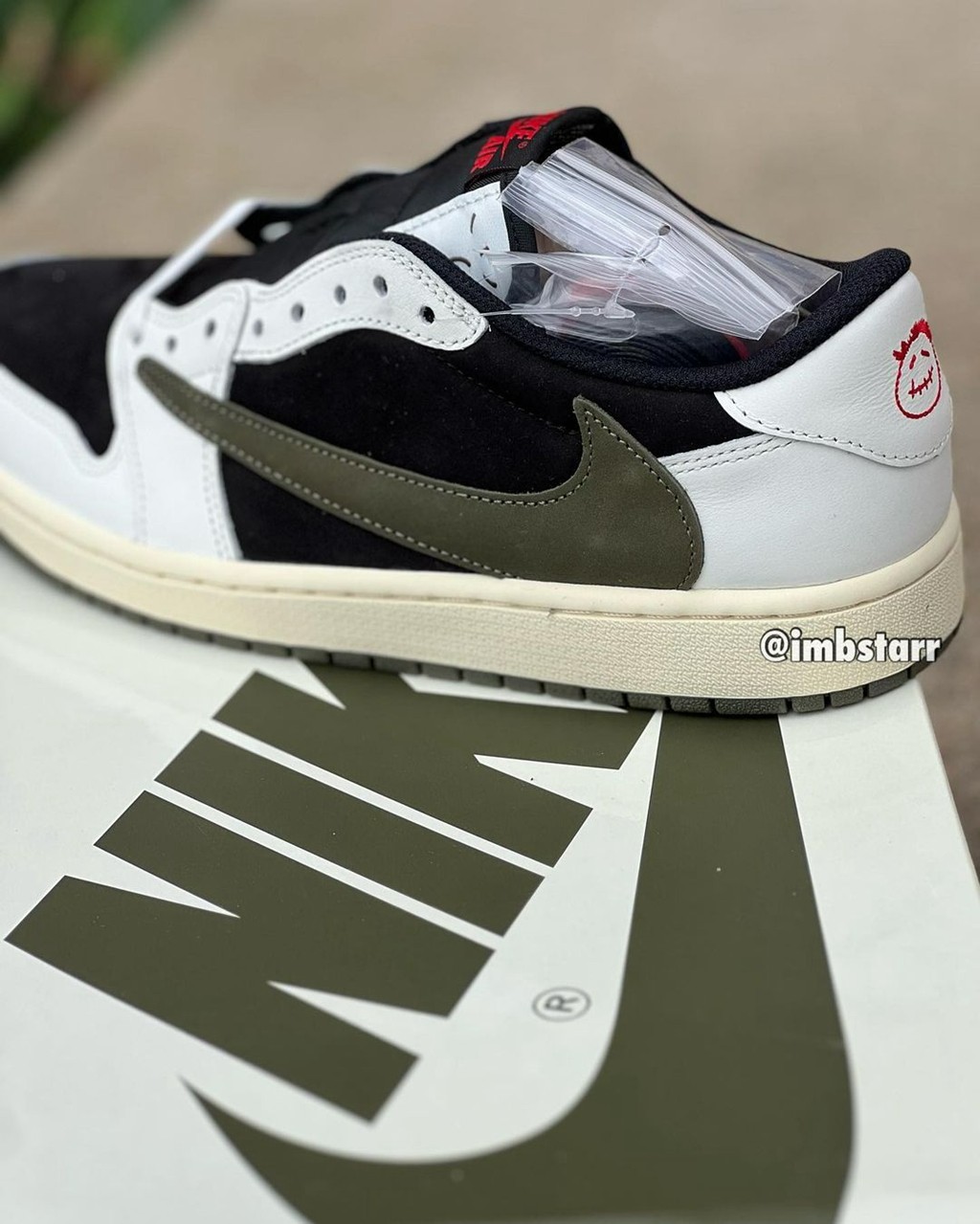 近日,这双 Travis Scott x Air Jordan 1 Low OG WMNS “Olive” 又有全新实物曝光。