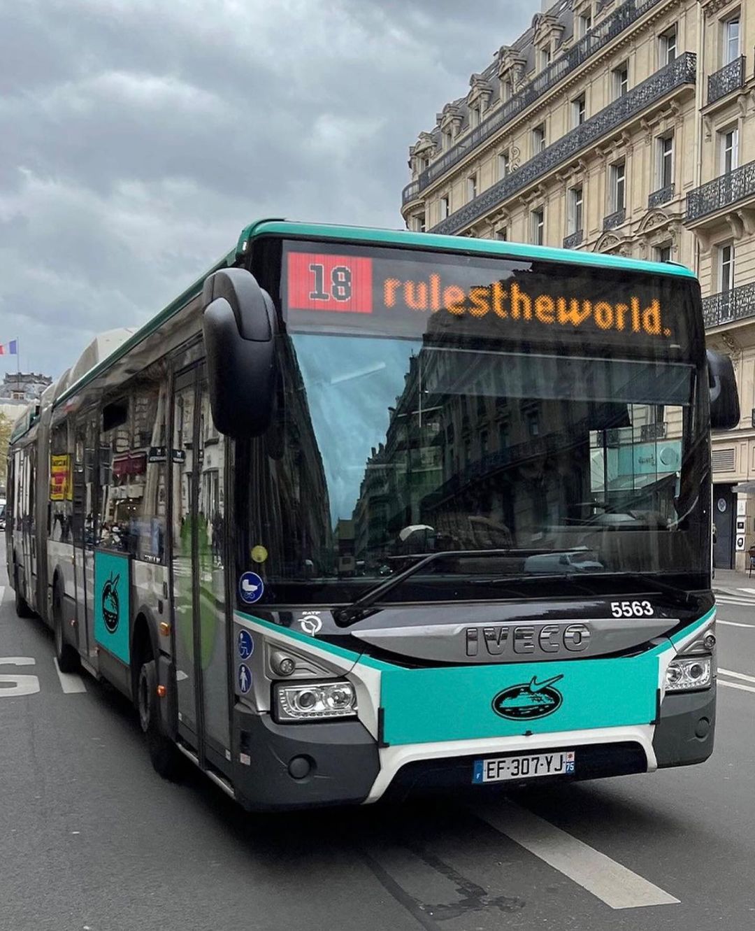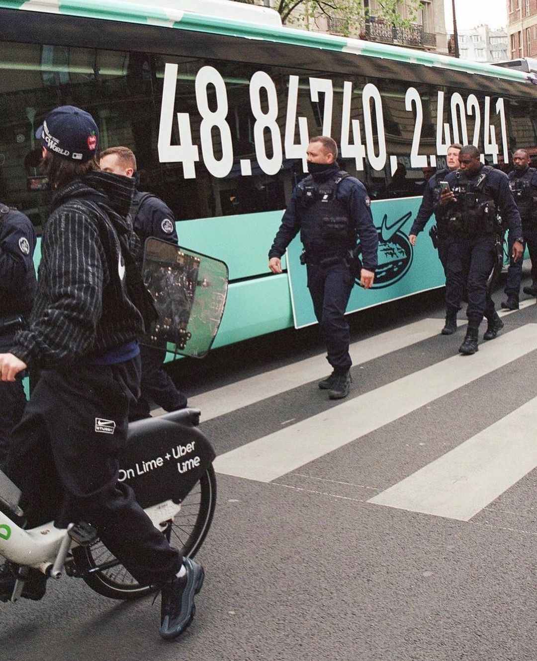 甚至为此定制了一辆,rules the world 以及 Corteiz Logo 的公交车。