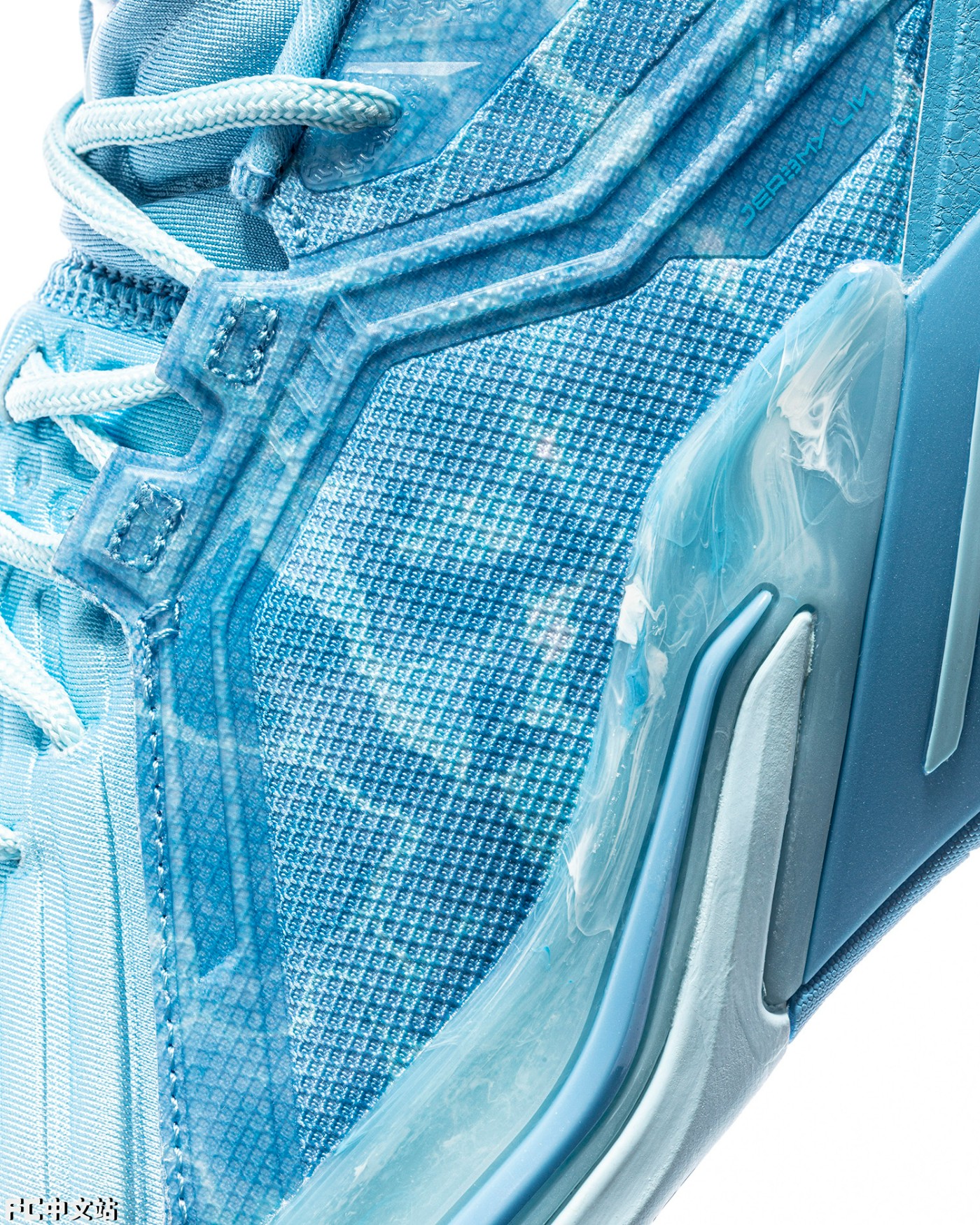 令人惊喜的是,为了突出这一主题,在鞋面上覆盖大量水波纹图案,结合淡蓝色鞋面,可以说是惟妙惟肖了。