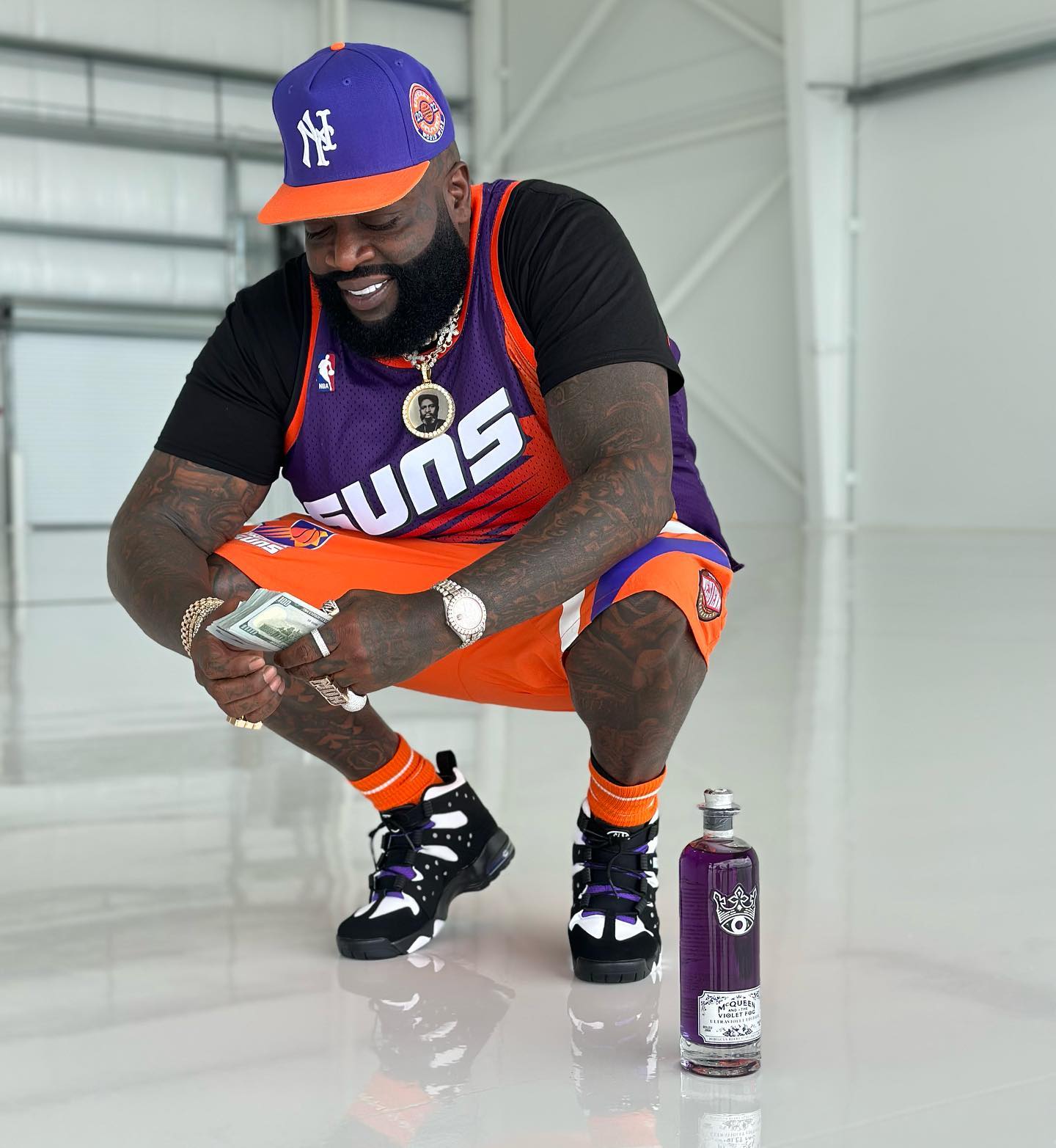 在配色方面,Rick Ross 选择了与太阳队主色球衣相同的“Pure Purple”,完美提升了整身穿搭的完整度。