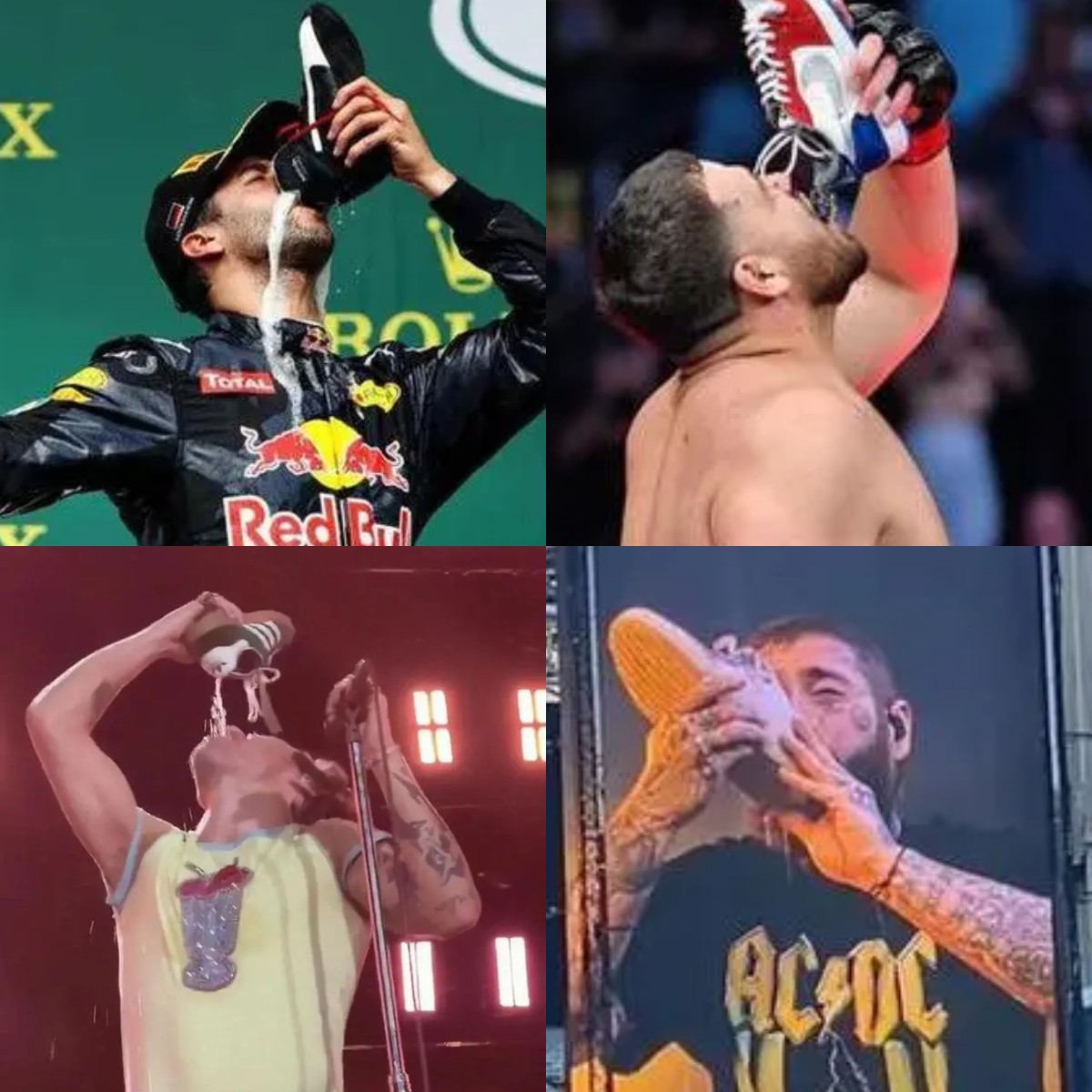 这种叫做 “Shoey” 的庆祝方式,此前 Post Malone、Harry Styles 甚至 F1 赛车手大牙里卡多,都会这样庆祝。