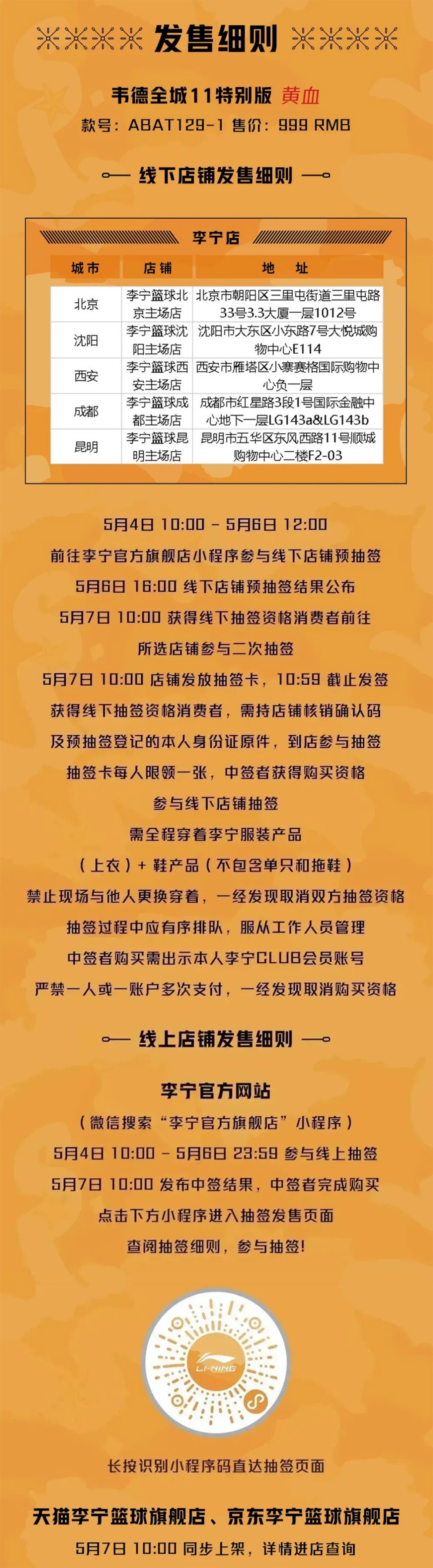 同时还在李宁官方旗舰店小程序进行线上抽签,将于 5 月 6 日 23 点 59 分截止,喜欢的朋友千万错过!