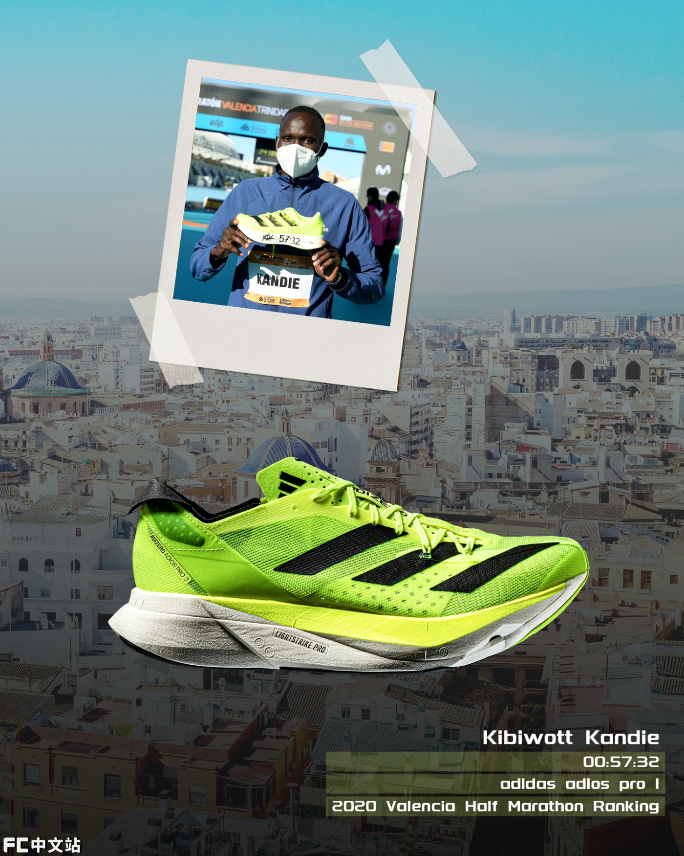 最后一双是来自于 Kibiwott Kandie,在 2020 年瓦伦西亚半程马拉松比赛中,他以 57 分 32 秒的新世界纪录夺得冠军,将之前的世界纪录缩短了近 30 秒。