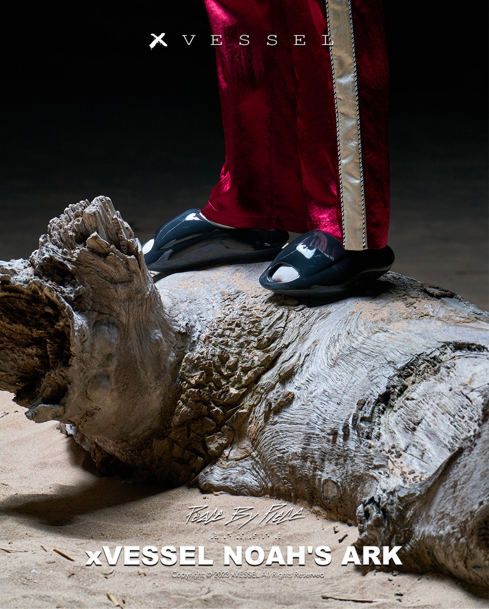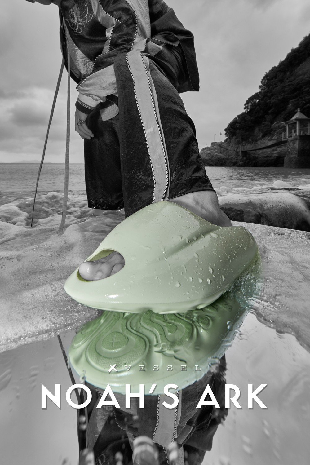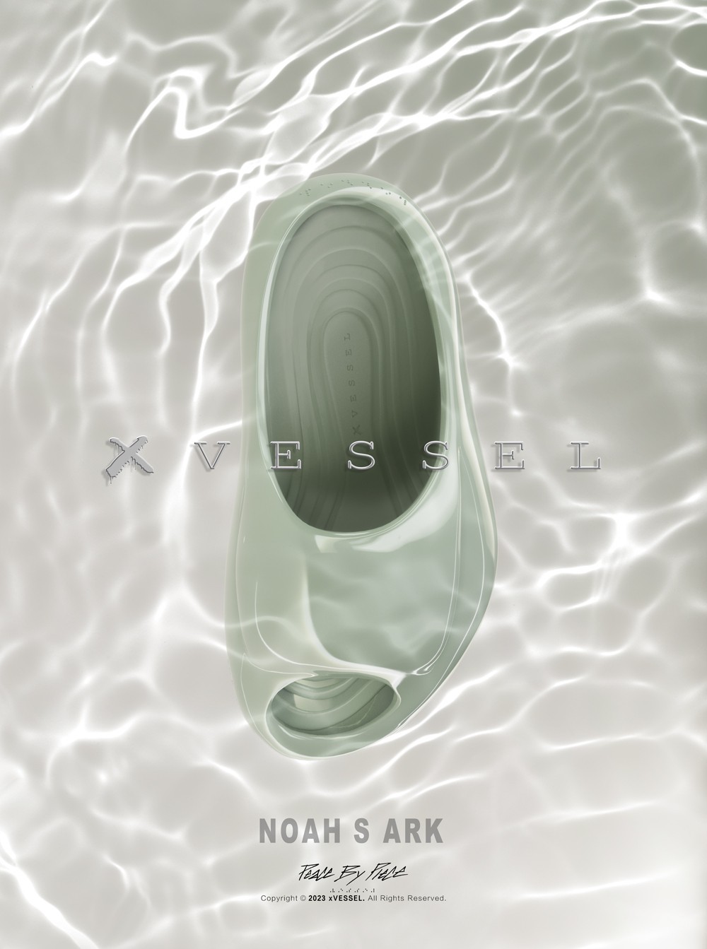鞋款命名为 xVESSEL NOAH‘S ARK,外形灵感来源于诺亚方舟,两头尖翘的圆形船只。