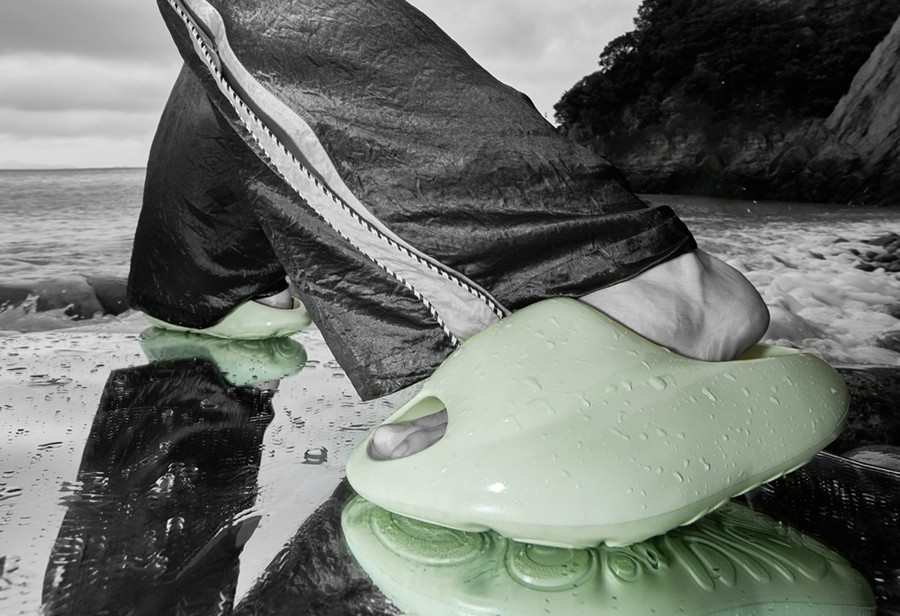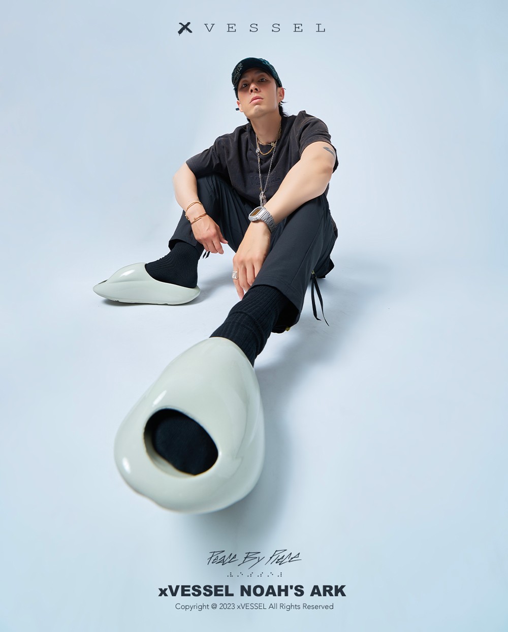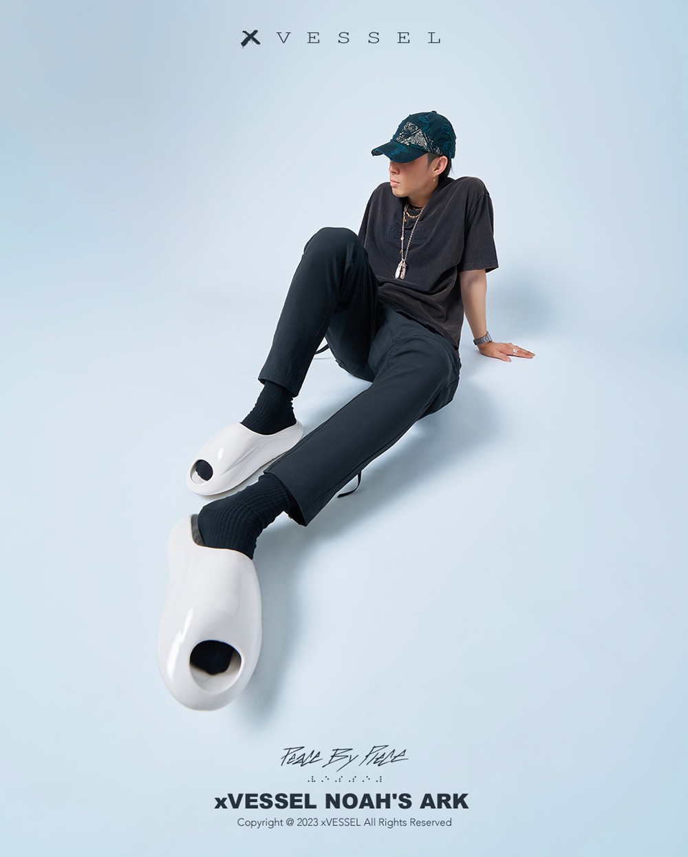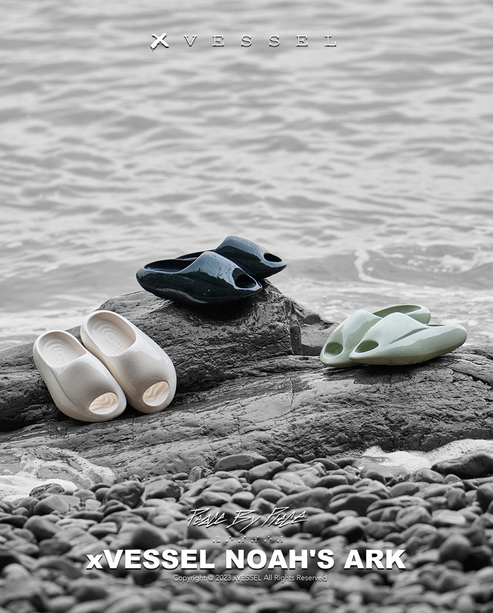 鞋款命名为 xVESSEL NOAH‘S ARK,外形灵感来源于诺亚方舟,两头尖翘的圆形船只。