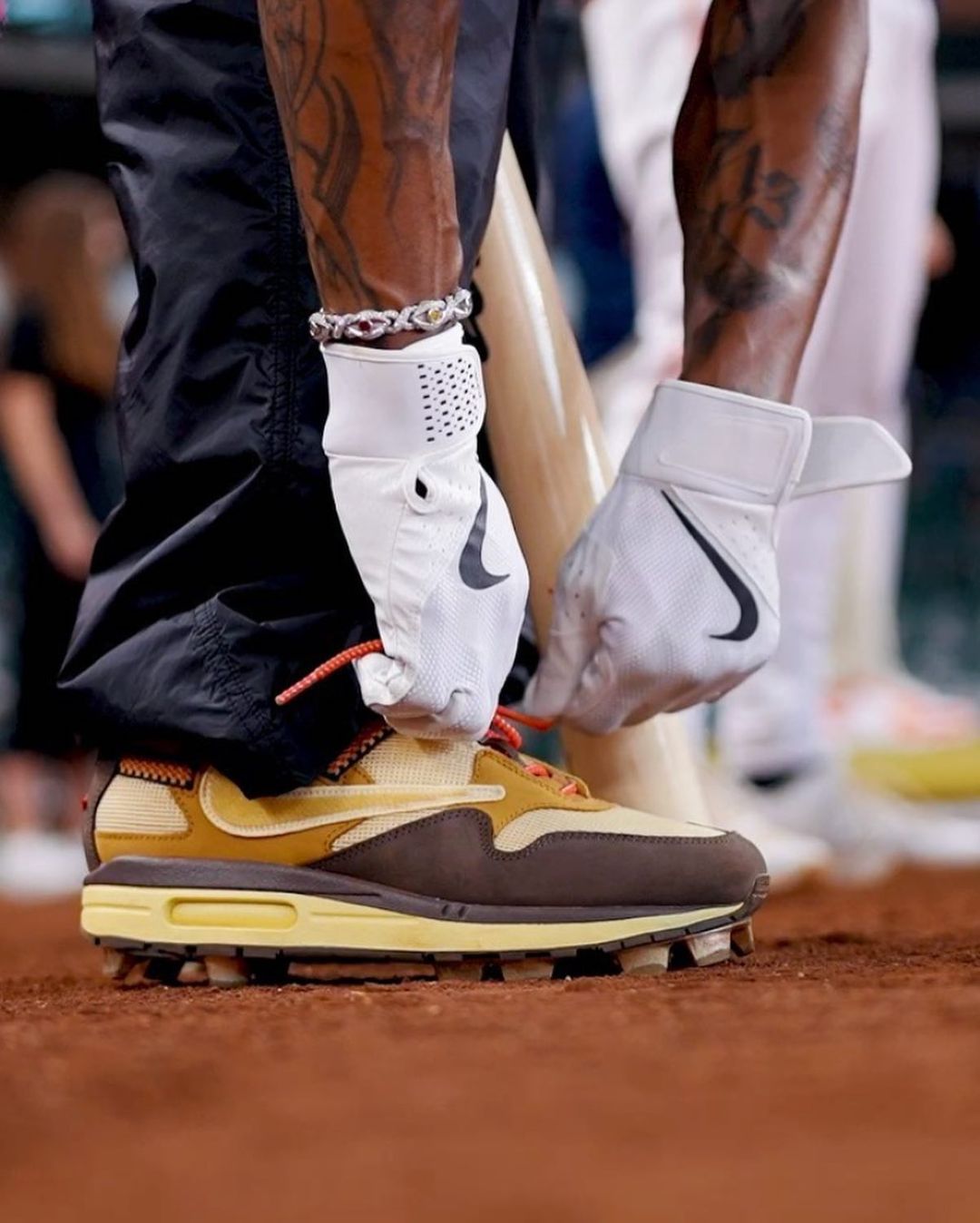 相比此前市售版 Travis Scott x Nike Air Max 1,外底改为鞋钉设计。