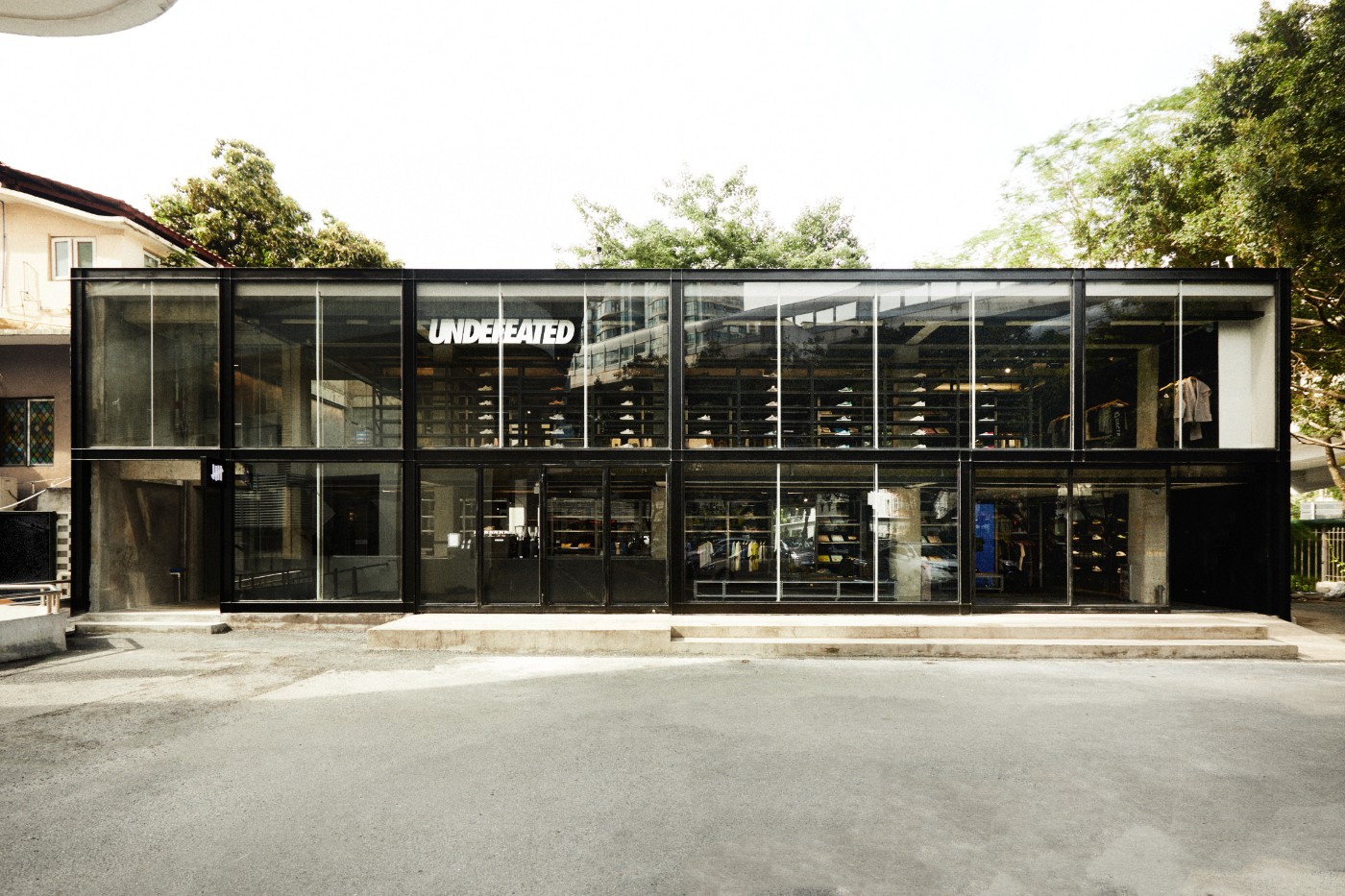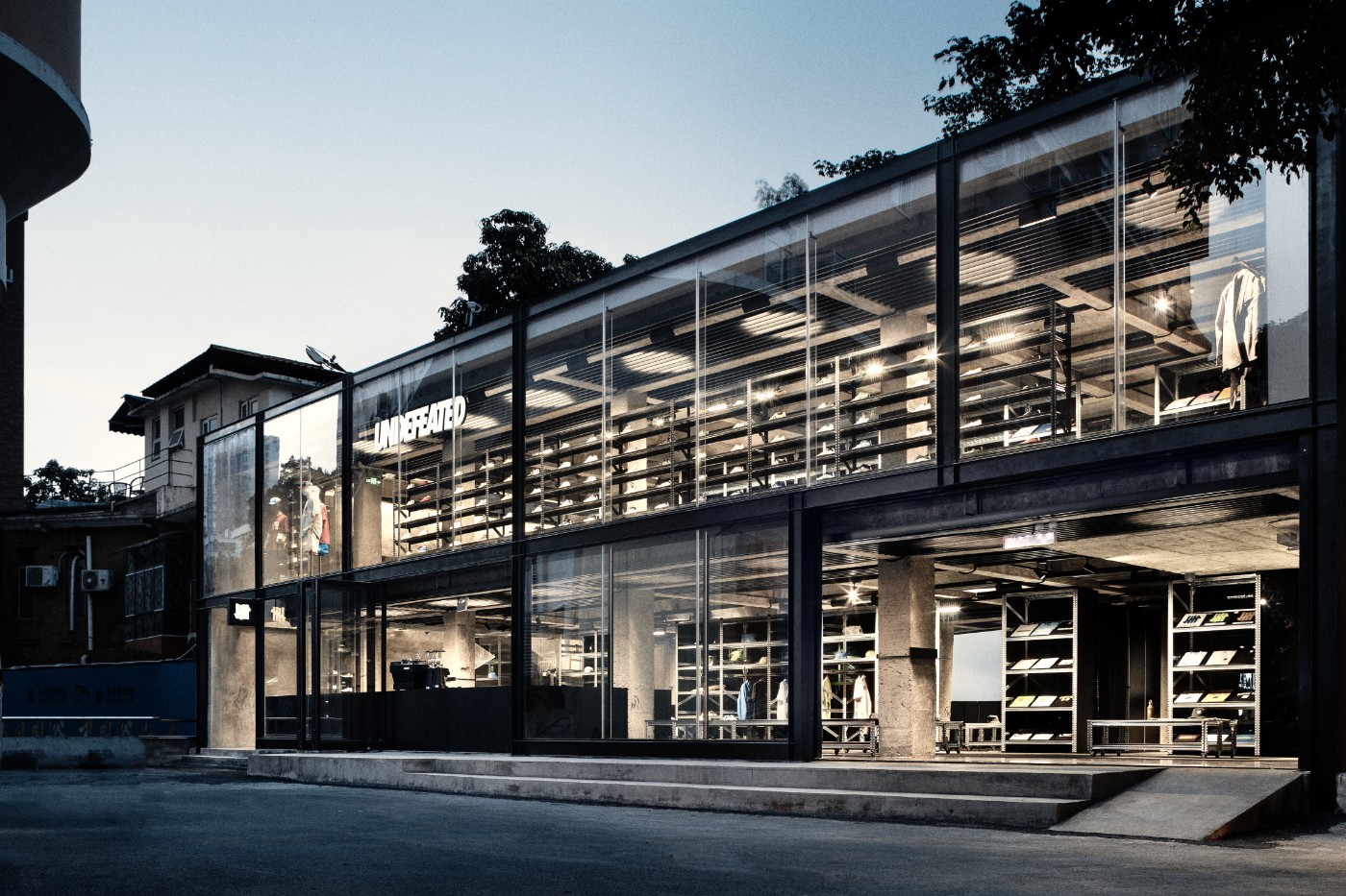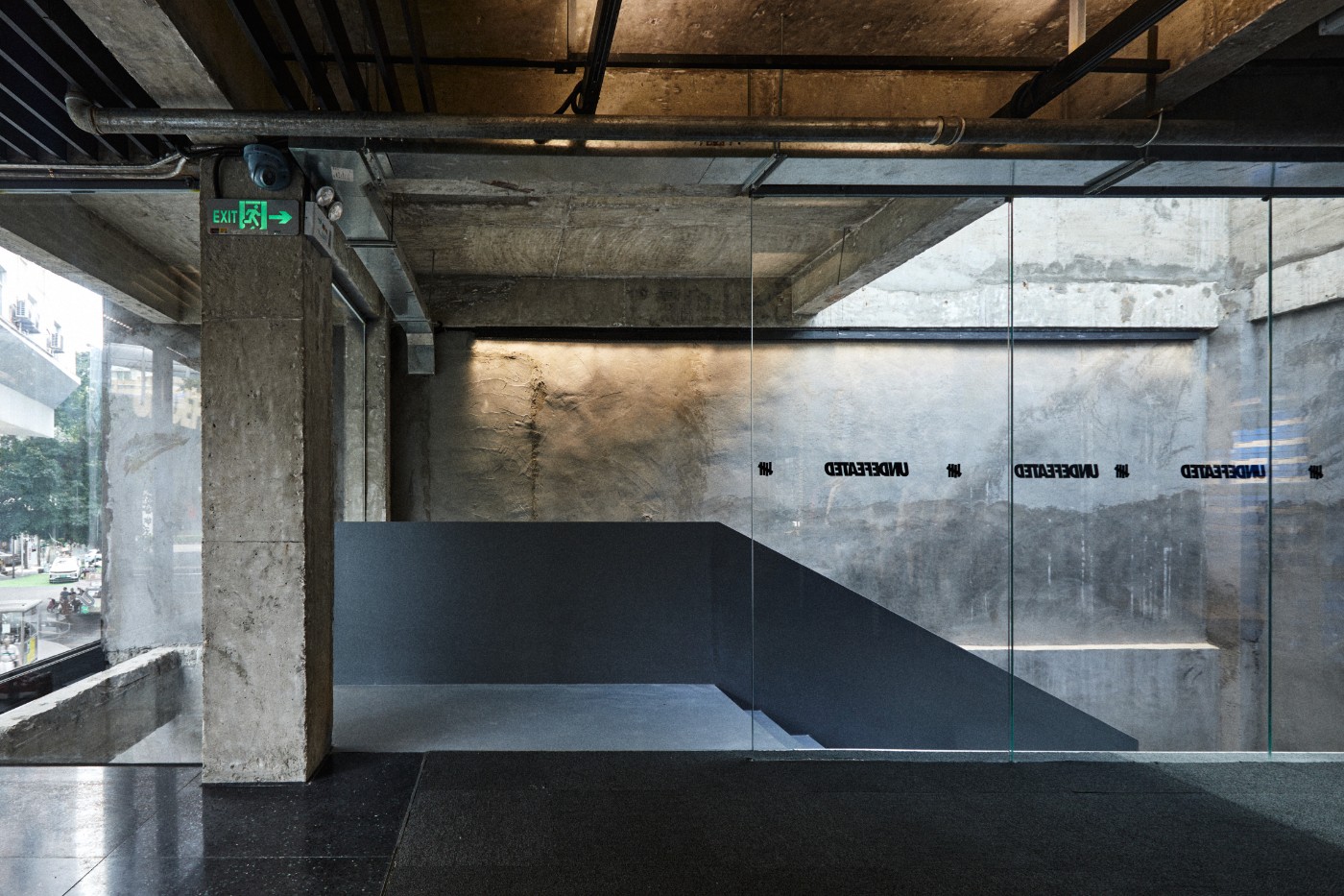 为了更好地展示 UNDEFEATED 的形象,Link Architects 决定对原建筑进行重新改建与重塑,将原建筑的装饰表皮铲除,裸露出原始混凝土的建筑构造,让设计回归功能。
