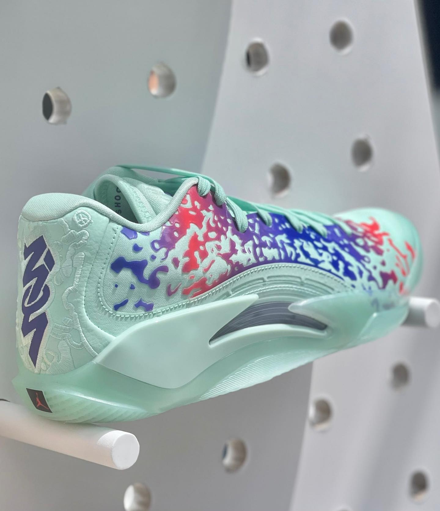 并将这些不规则的水花喷溅图案运用在鞋面上,成为本次 Jordan Zion 3 的视觉核心。