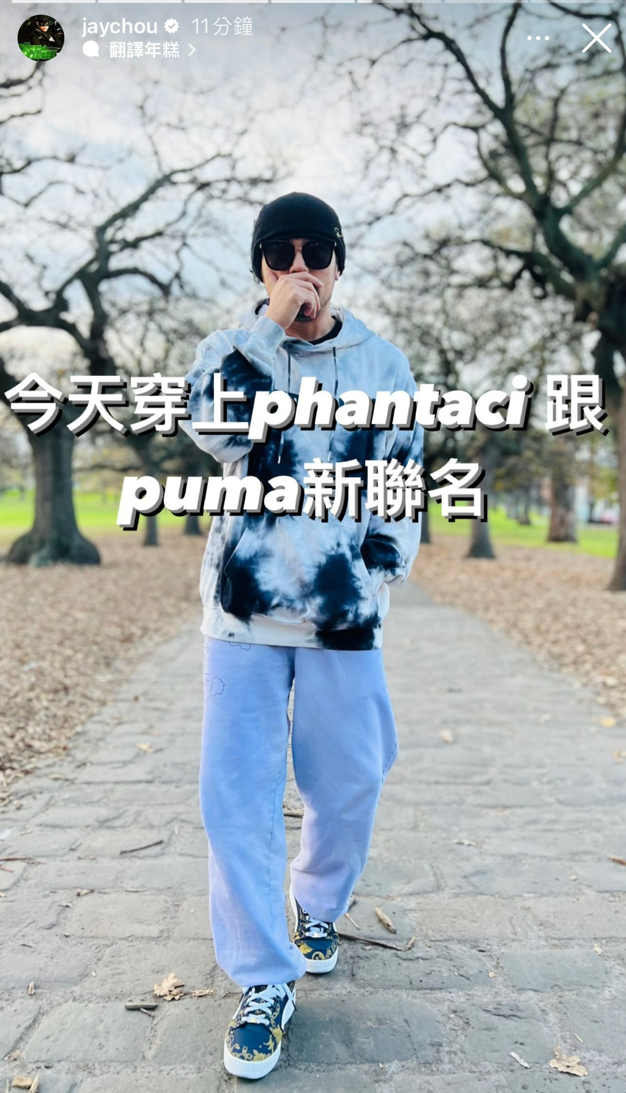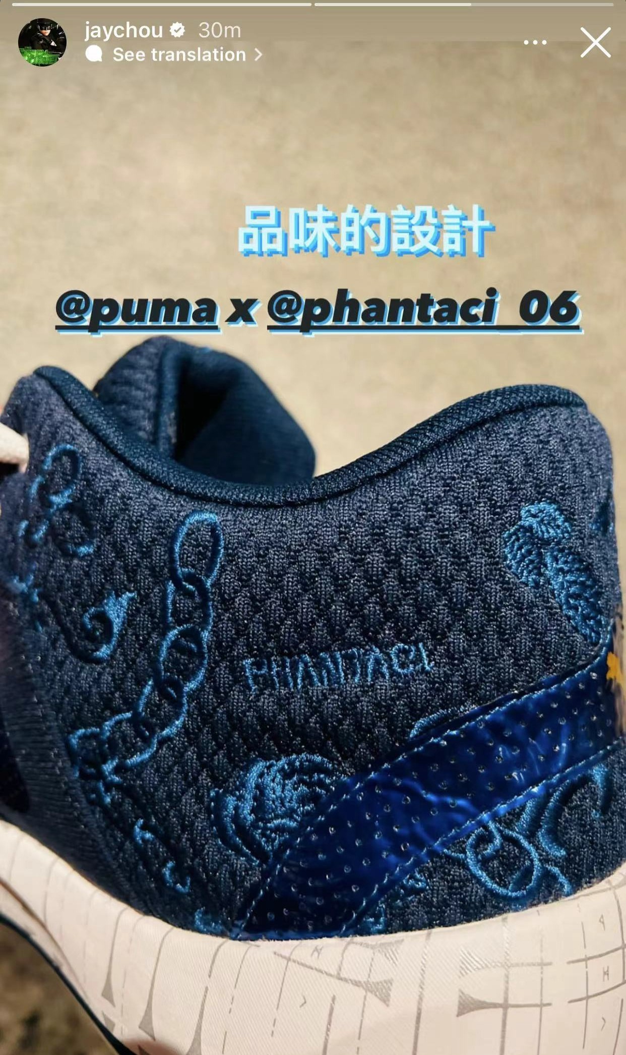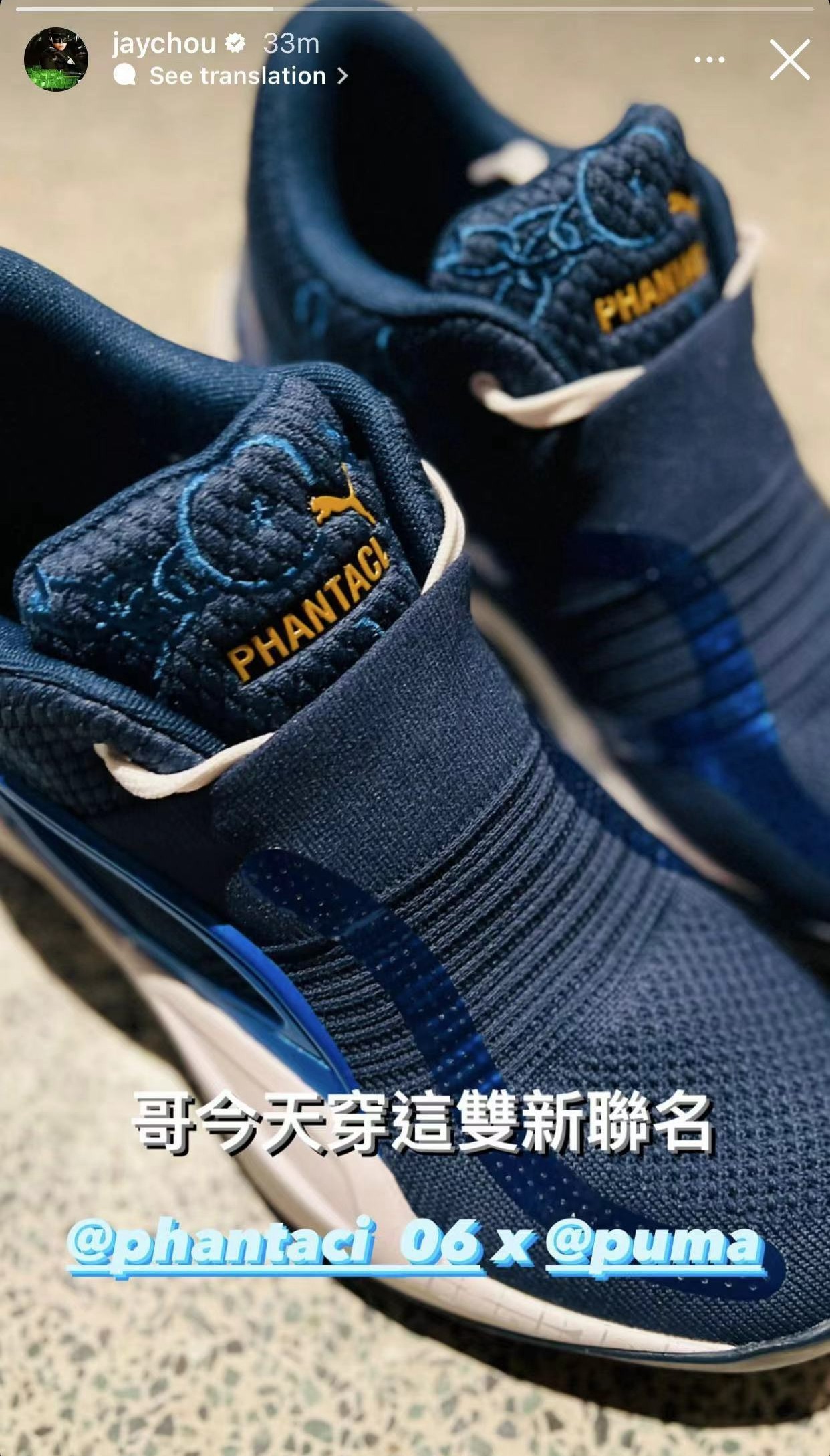 其实在 Ins 快拍中周杰伦就晒出了这双 PHANTACi x PUMA 联名新鞋。