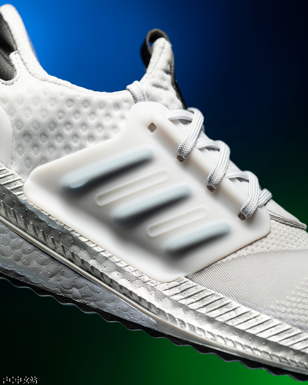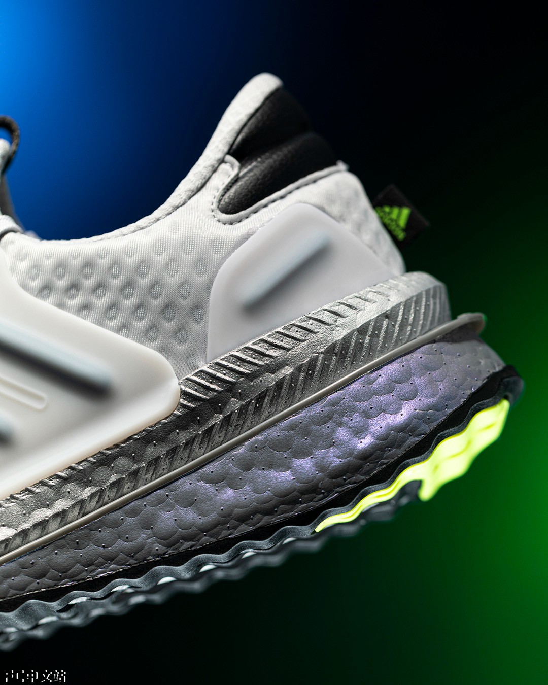 特别是这双配色在 Boost 上还有独特的偏光涂装,在不同角度下呈现变幻效果。