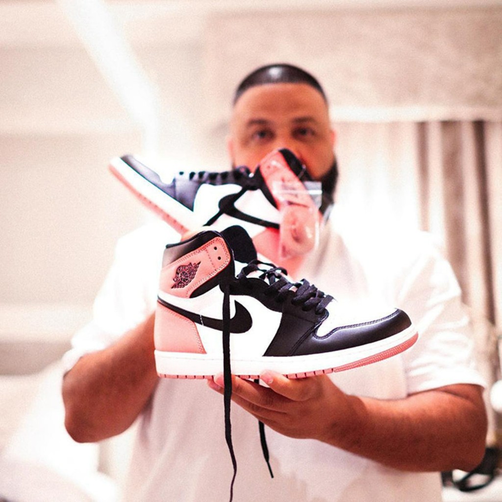2017 年,曾在迈阿密巴塞尔艺术展上少量发售的脏粉 Air Jordan 1 “Rust Pink”,目前 42 码在市面上已经来到 5 万元,入手难度可想而知,也难怪 DJ Khaled 会对它爱不释手!