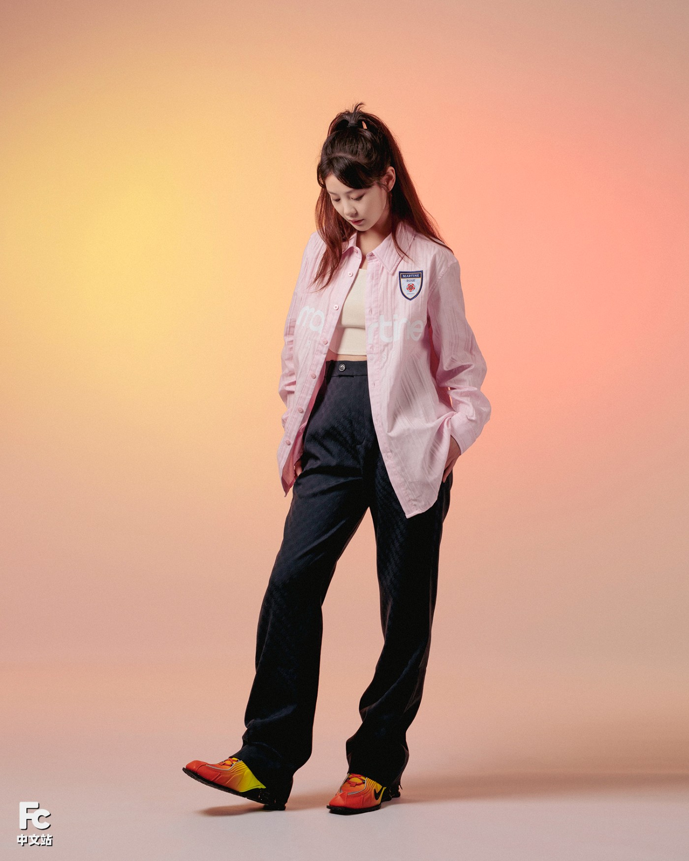 以女足运动员穿搭为灵感,将球衣图案巧妙融合其中,蓝色、粉色以及白色三色可供选择,发售价格为¥1599 元。