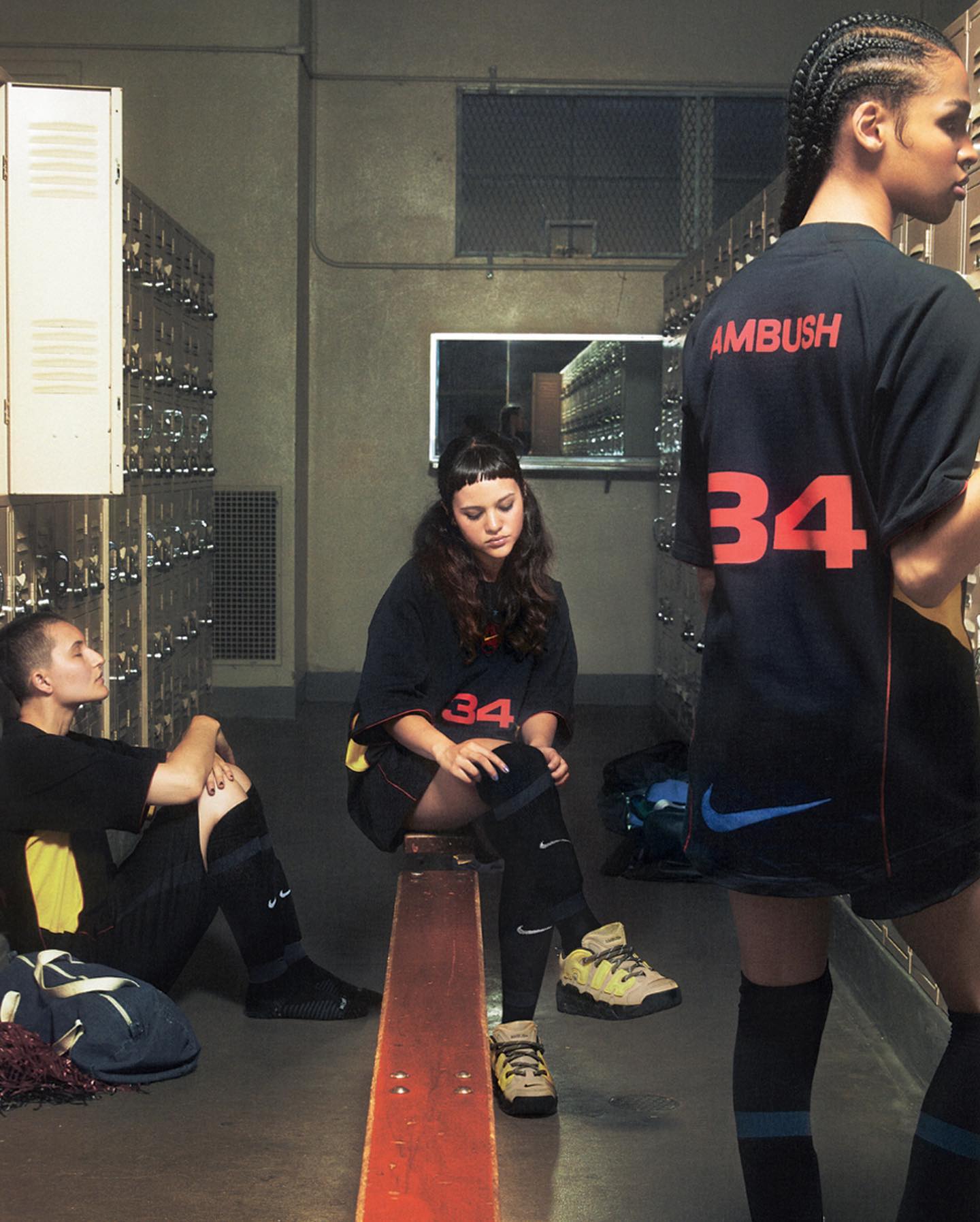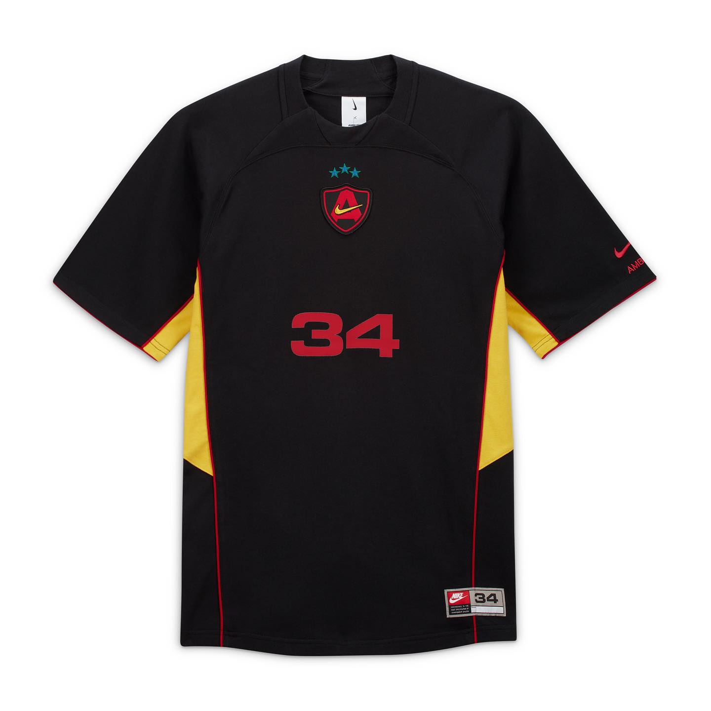 上衣采用黑色覆面,红黄双色点缀,并印有 AMBUSH、34 和 Nike Swoosh Logo,本次发售尺码在 XS - XL 区间。