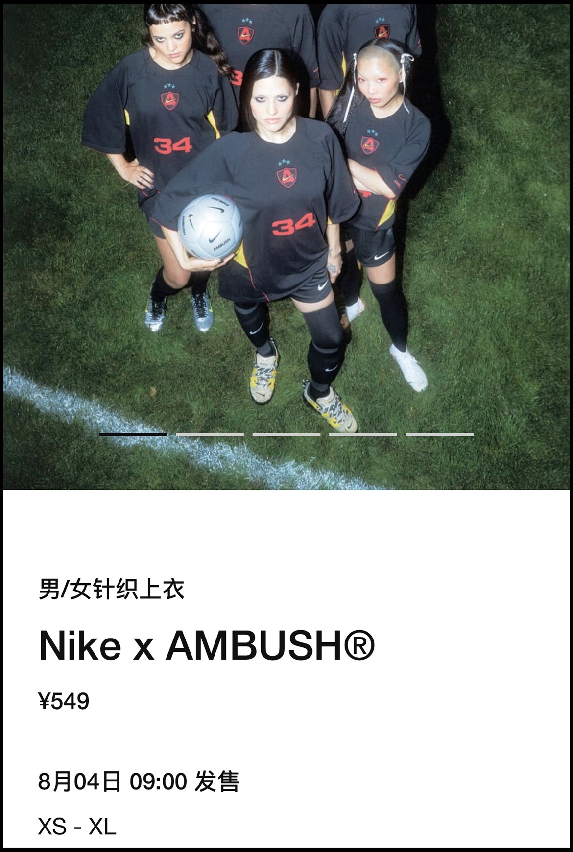 据悉,全新 Nike x AMBUSH 系列现已上架 SNRKS 中国 APP,将于 8 月 4 日也就是明天上午 9 点登场,鞋款售价为 ¥1599 元,服饰售价为 ¥549 元,足球售价为 ¥499 元。