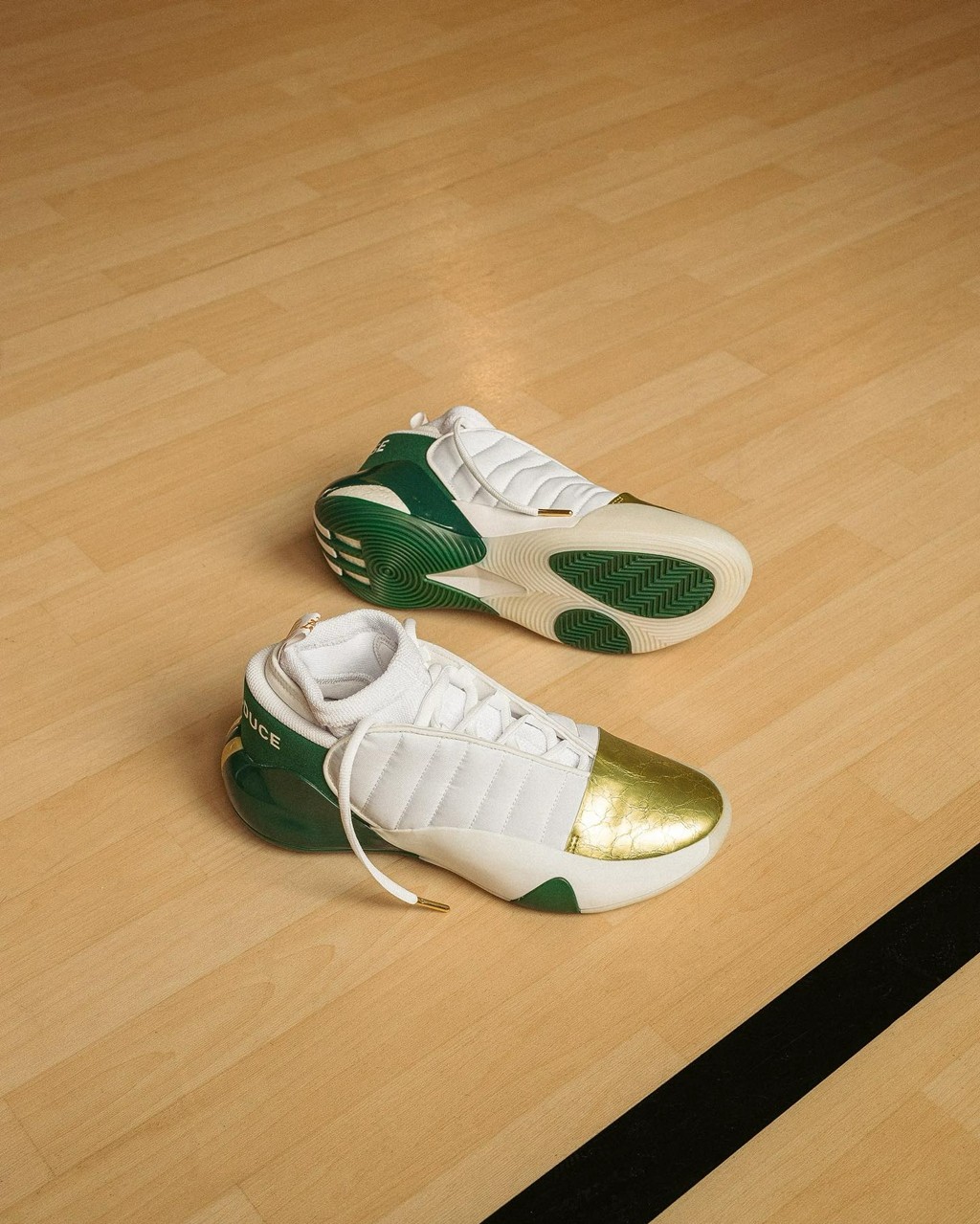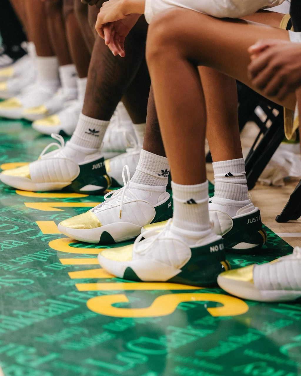 学校球场的配色就是鞋身上所展示的绿、金搭配。