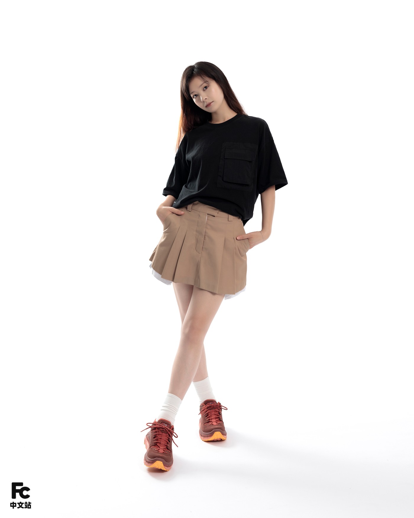 搭配方面,女孩子们可以学习编辑部小姐姐的穿搭,用短裙和略带工装属性的短 T 驾驭,完美呈现出 Gorpcore 户外穿搭风格。