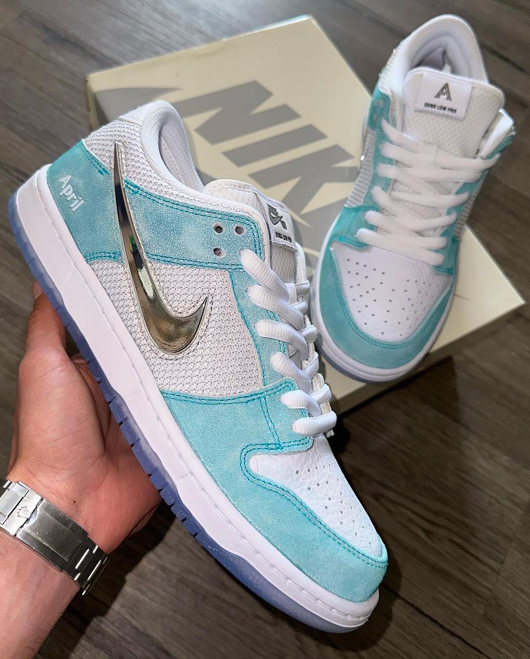 前段时间,Nike 携手佛罗里达州滑板店铺 April Skateboards 推出了一款全新联名,由于配色原因更是被人们戏称为「小蒂芙尼」Dunk SB Low Pro。