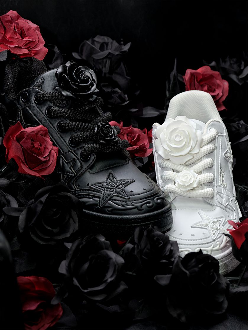 随鞋附赠的立体玫瑰花配件和彩色鞋带与鞋身形成了撞色效果,为穿搭提供了更多可能性。